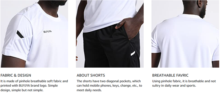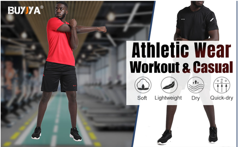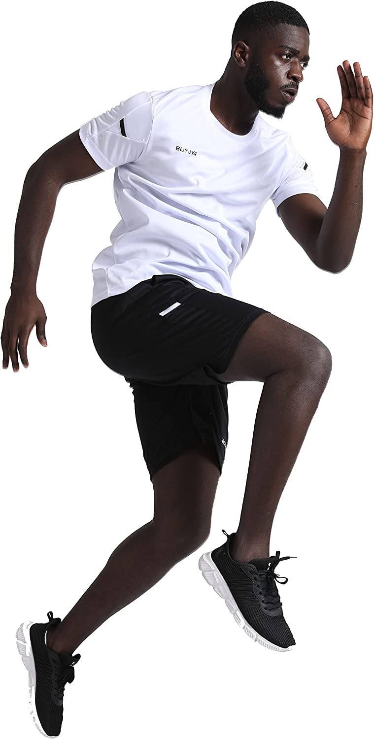 BUYJYA Men's Workout Clothes Athletic Shorts Shirt Set 3 Pack for Basketball Football Exercise Training Running Gym
