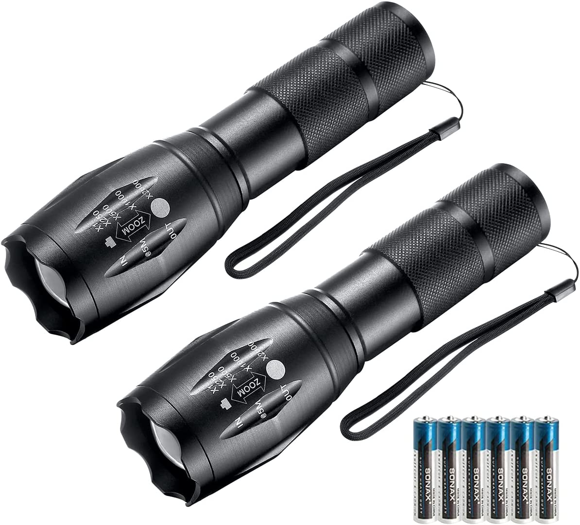 Whaply LED Flashlights, 2 Pack Tactical Flashlight High Lumens Lights with 6Pack AAA Batteries Portable Waterproof Zoomable Flashlight with 5 Mode for Camping/Outdoor/Hiking/Gift-Giving/Emergency