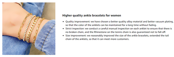 - Material: Environmentally Alloy, lead/nickel free and hypoallergenic, perimeter: 7in-8.5in; tail chain length: about 2in; adjustable; number of anklet chain sets: 4PCS/6PCS, more choices for customers; color: gold; high quality electroplated to ensure that it glistens.