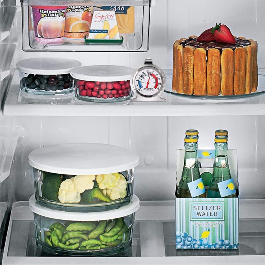 【DURABLE MATERIAL】The fridge thermometer is made of high-quality stainless steel material, stainless steel construction provides strength, durability, not easy to break, long life, easy to clean structure and glass protective lens make it nice for use in the refrigerator and freezer.