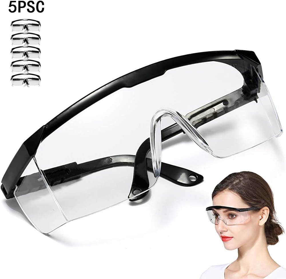 Safety Goggles, 5PCS Adjustable Wide-Vision Protective Glasses, Lightweight Fog-Proof Safety Goggles