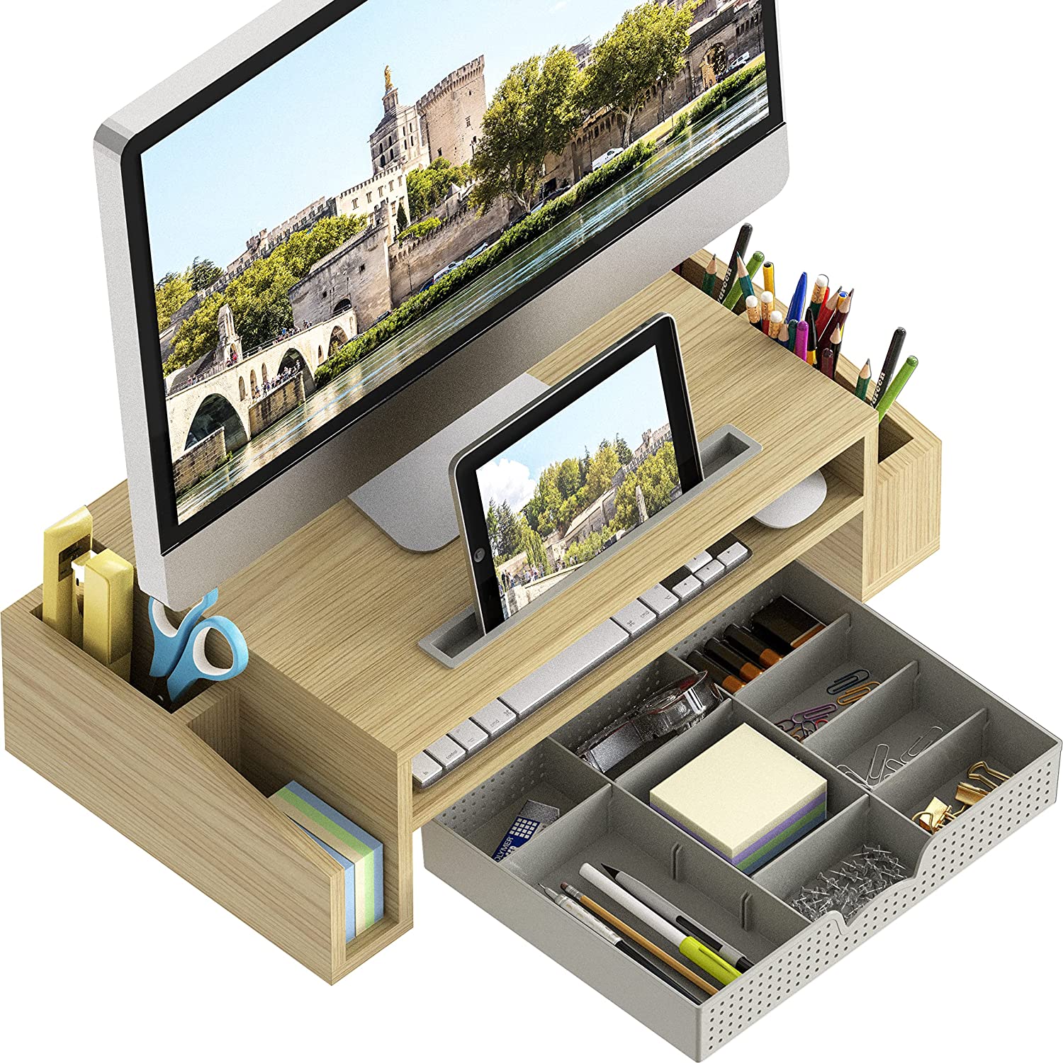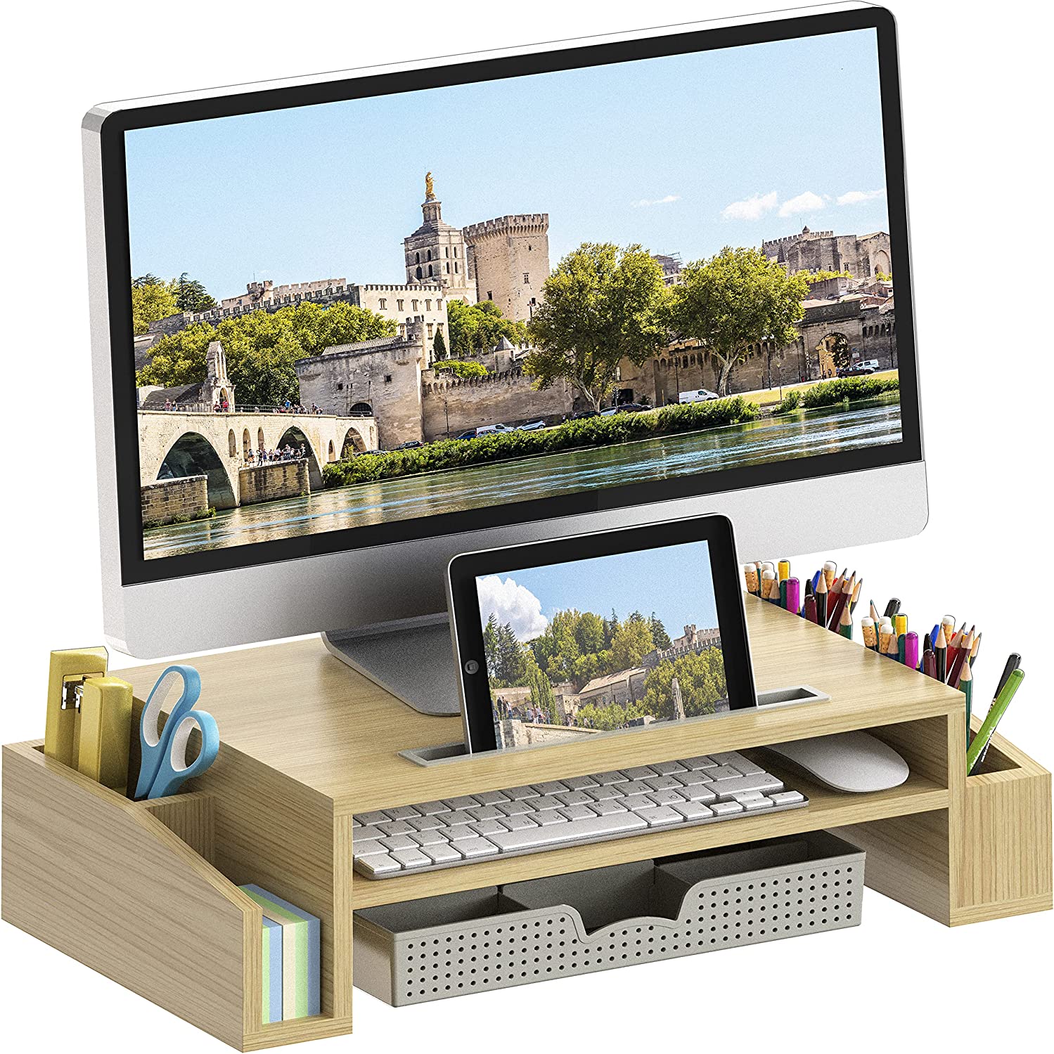 SimpleHouseware Desk Monitor Stand Riser with Adjustable Organizer Tray