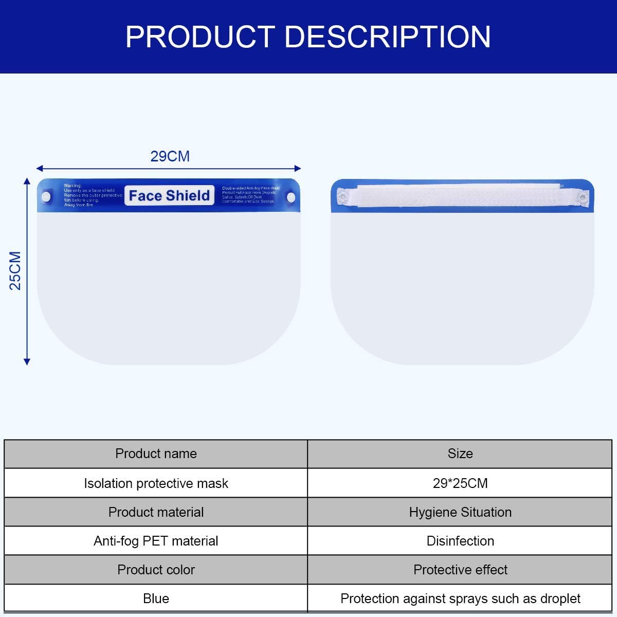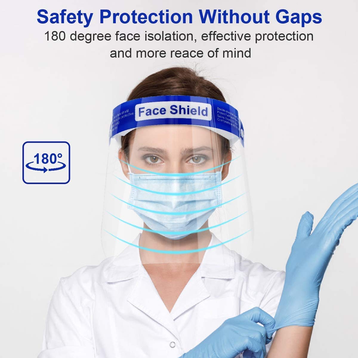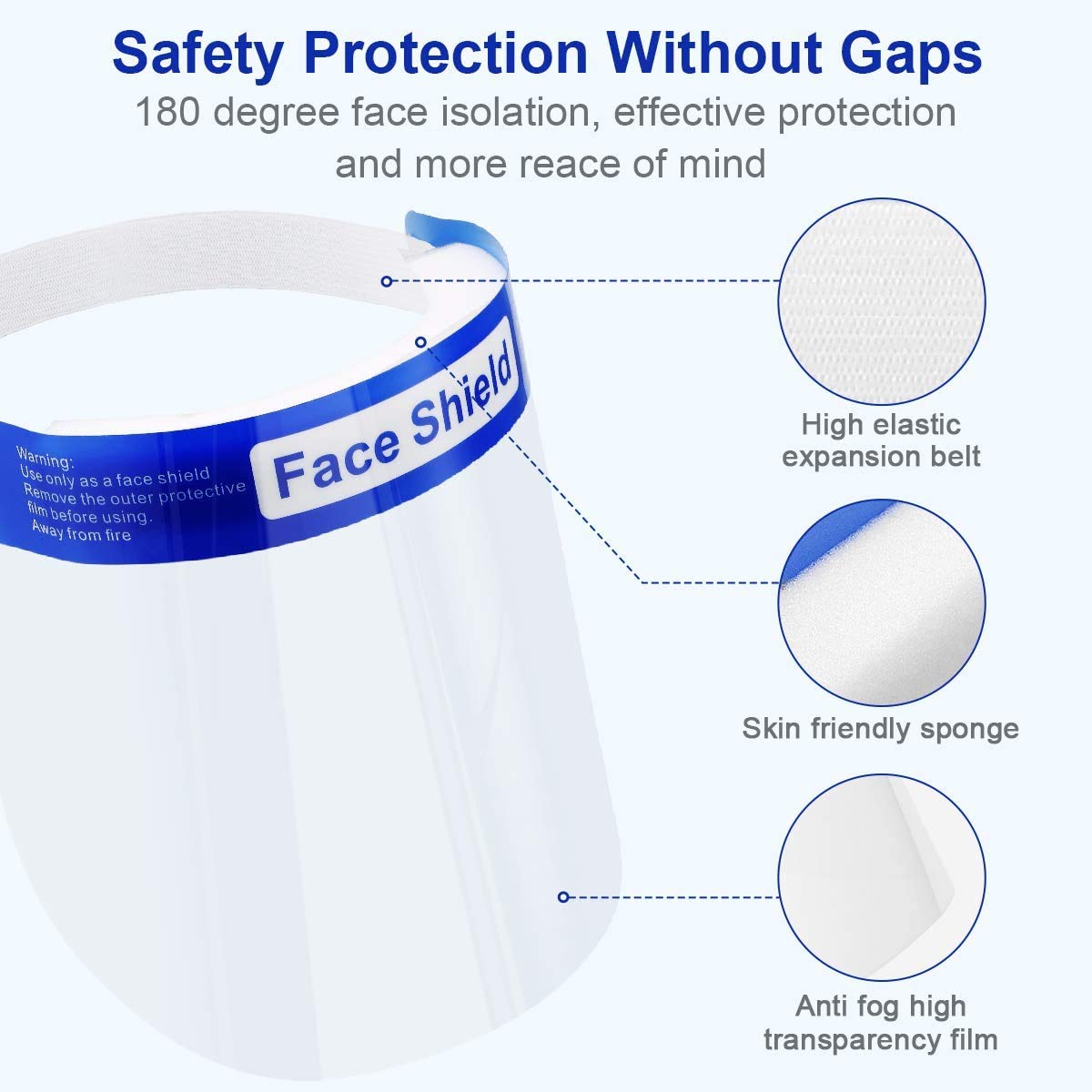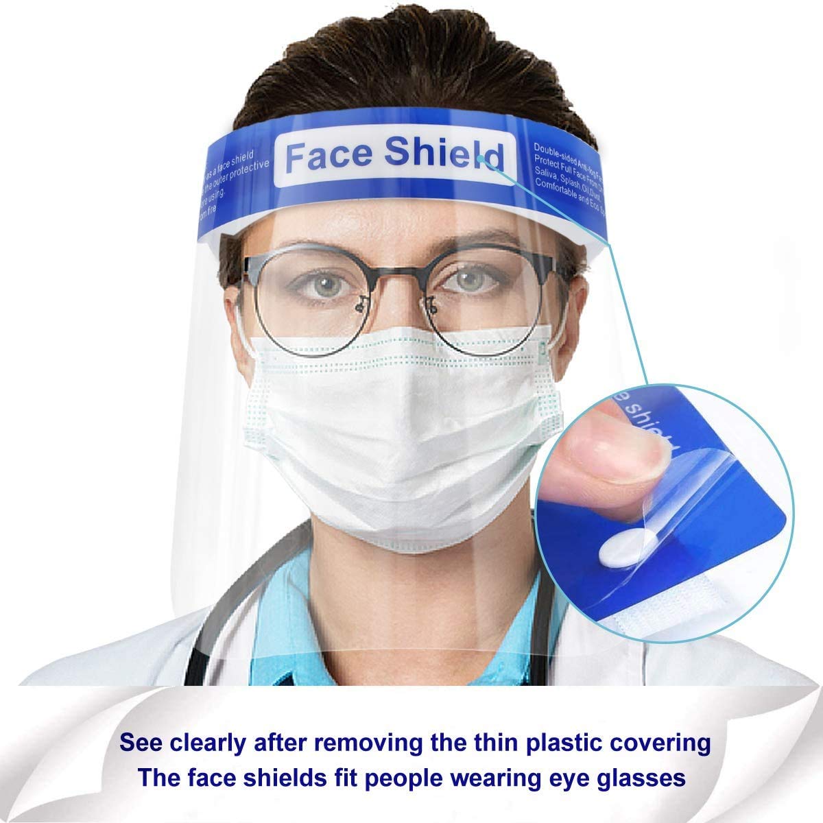 WORUIJIA Face Shield for Protection with Glasses Reusable Clear Mask 10 PCS Anti-Fog No Installation Required with Comfortable Sponge and Elastic Band for Women Men, Blue
