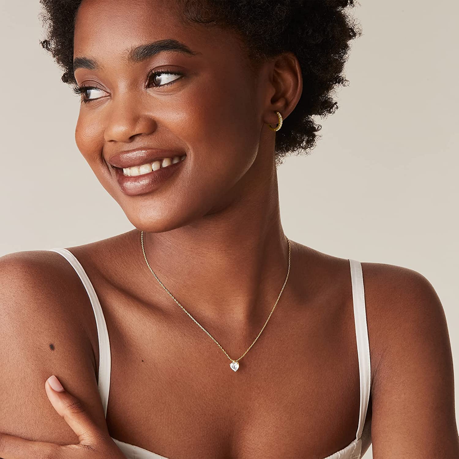 PAVOI 14K Gold Plated Cubic Zirconia Diamond Pendant Necklace for Women | Adjustable Slider
