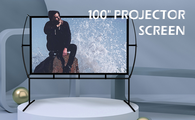 - ★Projector screen with stand:100 inch Portable projection screen, 16:9 format,160° Wide Viewing Angle. That offers sharp and high-resolution images,even support Front & Rear projection.