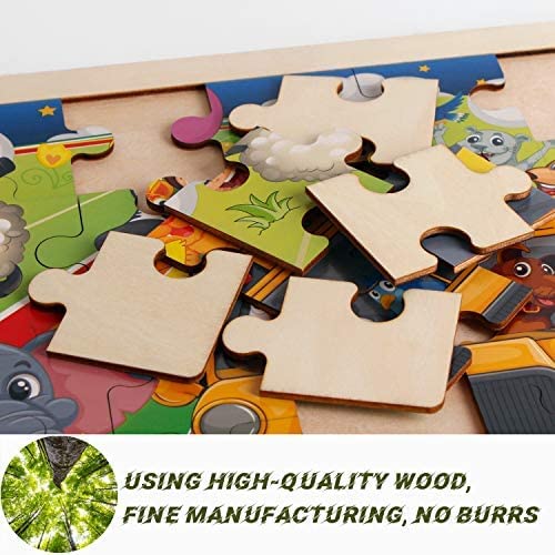 ❤ CHALLENGING GAME: There are 24 PCs of wooden blocks in each jigsaw puzzle, so it is a little challenging for toddlers to complete all the puzzles in the beginning. Children can piece the puzzles with the help of the parents. As they gain enough experience, they are fully capable of finishing it on their own through which their brainpower grows and imaginations get strengthened.