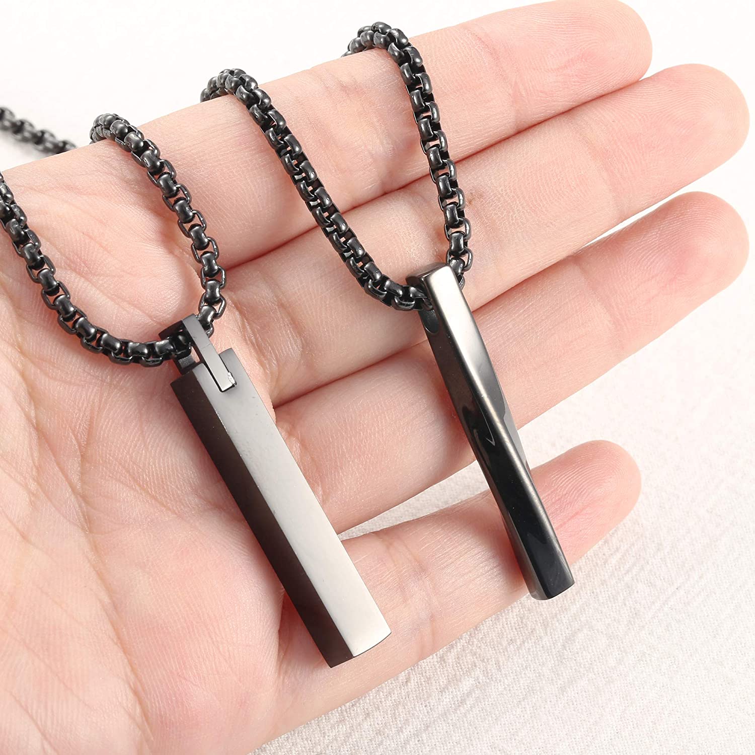 PRODUCT SIZE--Thick Bar Pendants Size: length: 40mm,width: 5.8mm,thick:5.8mm; Twisted Cube Bar Pendant Size: length: 40mm,width: 3.6mm,thick:4.6mm;All Come with a 3mm 24 inch chain. Perfect size for men and women