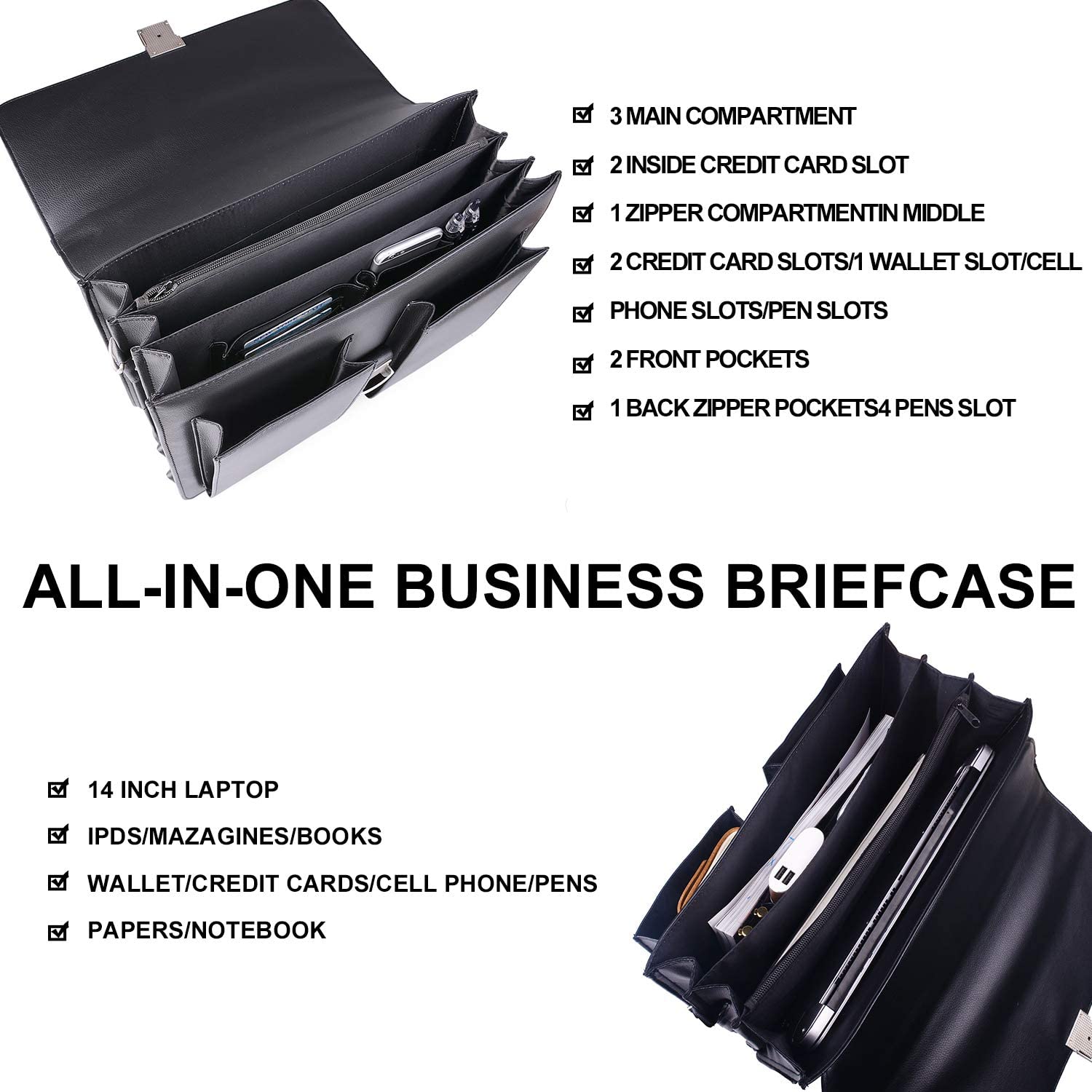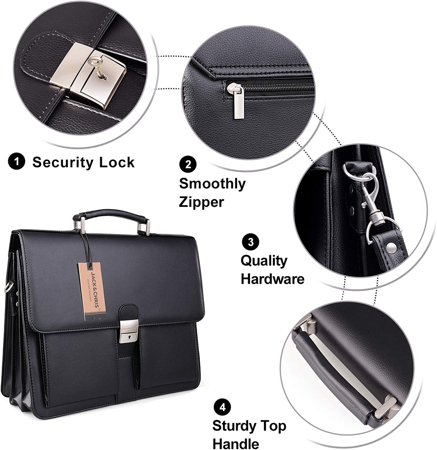 - [Classical Design] The classical look of this PU leather briefcase with lock will never out of style, it is a best gift for your families, friends, neighbors, coworkers etc. It could use a professional leather briefcase, business work men's briefcase, leather messenger bag,Satchel Bag