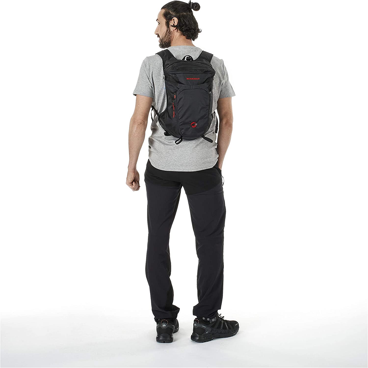 Mammut's Neon Speed is the perfect backpack for demanding climbing tours. In addition to its specific features, it makes use of the well-known CONTACT Basefit suspension system from the MTR series. This ensures that the Neon Speed sits perfectly on your back during even the most difficult climbing holds, thus allowing you to concentrate fully on your next move. Additional Information: - 210D Nylon Triple Ripstop - VENtech: Breathable, quick-drying materials - RV volume expansion on the front - 2 material carrying loops on shoulder straps - Rope fixation on the cover - Can be packed small in the zippered outer pocket Type: daypack Material Backpack: 100% Nylon Equipment Mounting options for equipment: Ski/snowboard attachment Dimensions Dimensions in cm (H x B x D): 43 x 23 x 9 cm Weight Backpack weight: 410 g Backpack Application: Climbing Build: Padded back Version / Back length: Normal Volume Large Category: 15 - 30 l l Backpack Volume: 15 l Strap Chest Strap Waist Strap Features Characteristics: Stick attachment