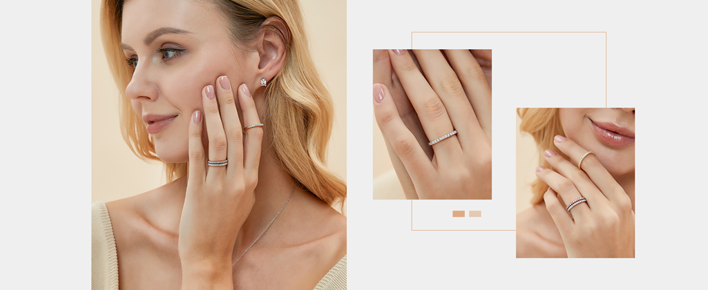 • ♥ Stylish ♥ Round-cut cz stones encircle the finger in this glamorous and whimsical band. A wonderful choice as a wedding ring band, it is also the perfect band to stack or wear on its own