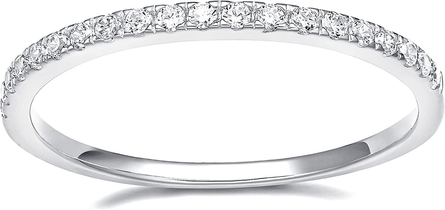 EAMTI 2mm 14K Gold Plated Wedding Band Cubic Zirconia Half Eternity Stackable Engagement Ring Size 3-13