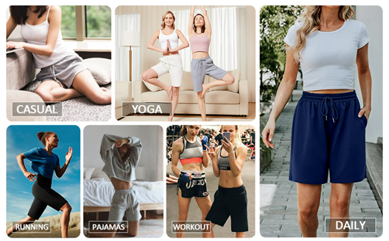 Material: This bermuda shorts made of 73% cotton, 20% polyester, 7% spandex. Cotton material give you comfy and breathable feeling. Spandex makes this sweat shorts stretchy, so you won't feel uncomfortable when you do any movement in this shortses, lounging around the house, etc.