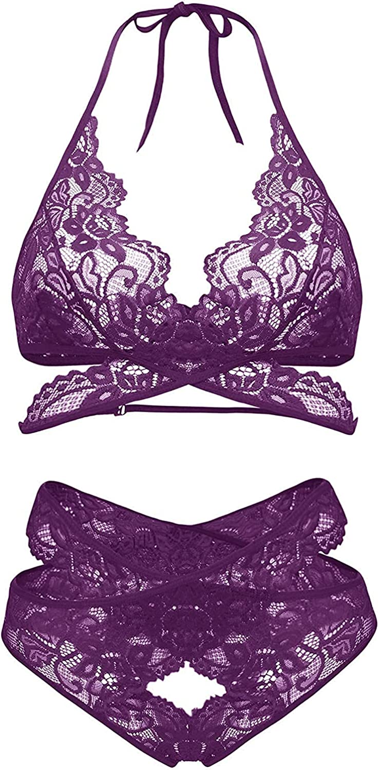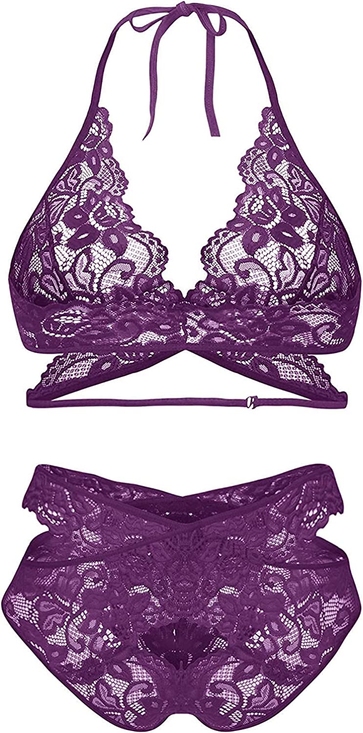 Donnalla Women Sexy Lingerie Set Two Piece Lace Bra and Panty Set Bralette Sleepwear