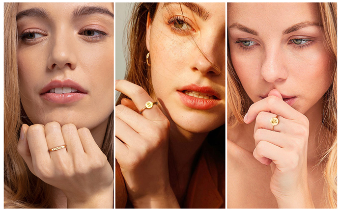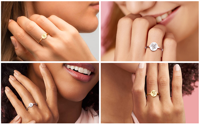YeGieonr Handmade Flower Signet Ring,18K Gold Ring for Women, Minimalistic Statement Ring with Botanical Engraved Delicate Personalized Jewelry Gift for Women/Girls