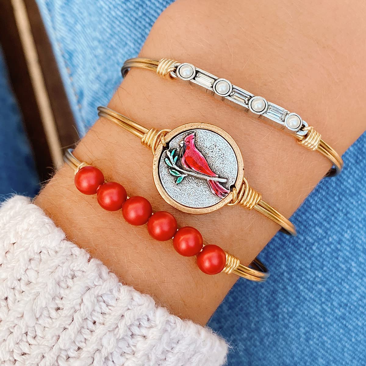 Luca + Danni Red Cardinal Bangle Bracelet For Women Made in USA