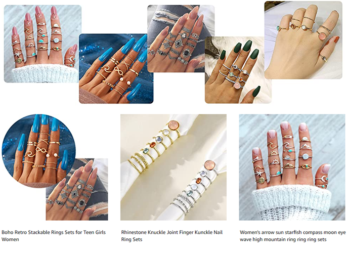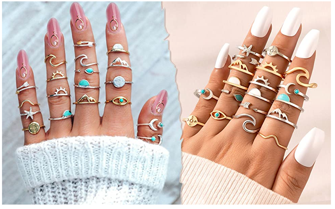 - Retro Stackable Rings: You will get 19 pcs knuckle rings with a combination of various styles such, Multiple ways of stacking makes you unique every day.We have wave rings,rhinestone ring,turquoise rings,starfish ring, peak ring,arrow ring,moon ring,sea ring,compass ring,vintage rings,etc.You can wear different rings every day according to your mood.