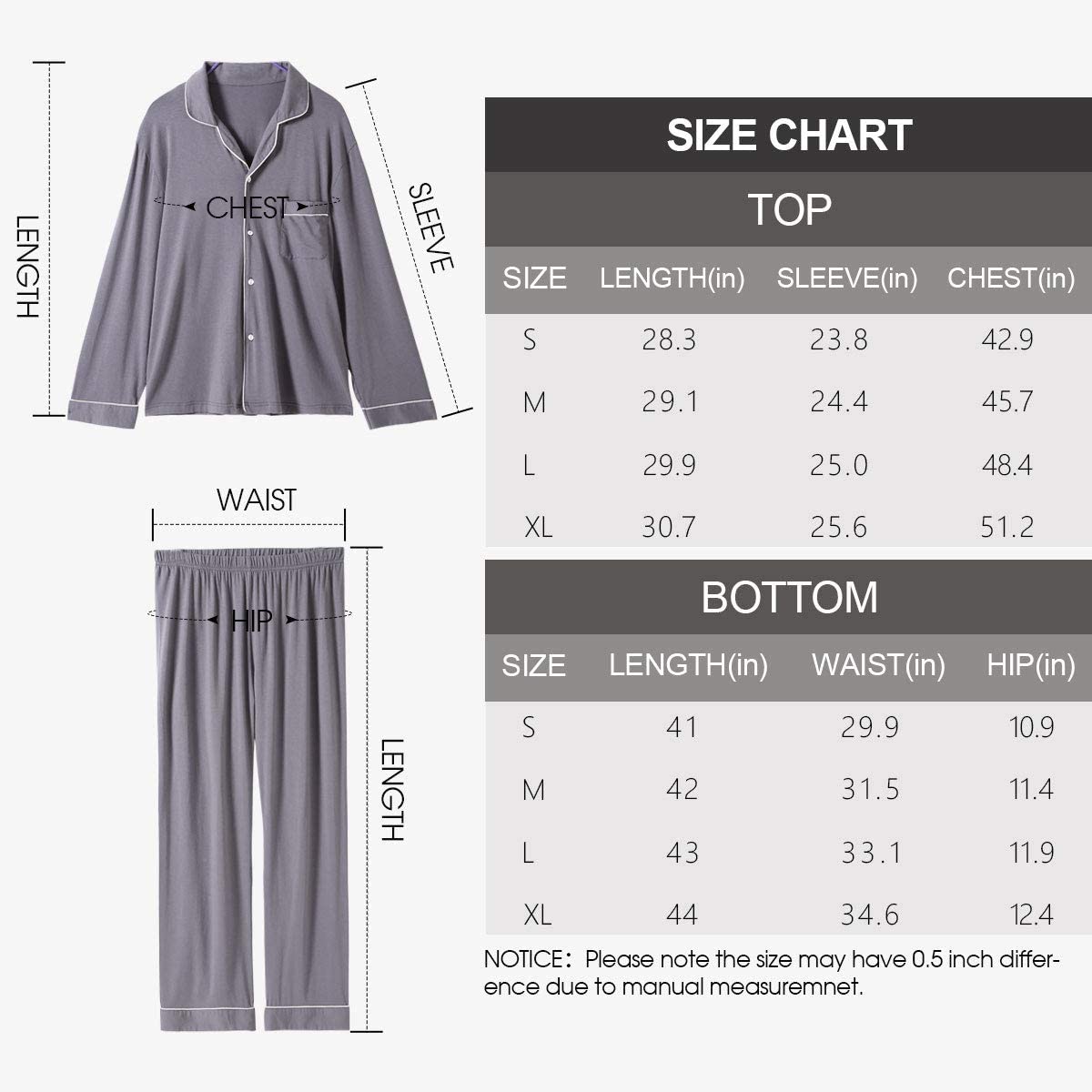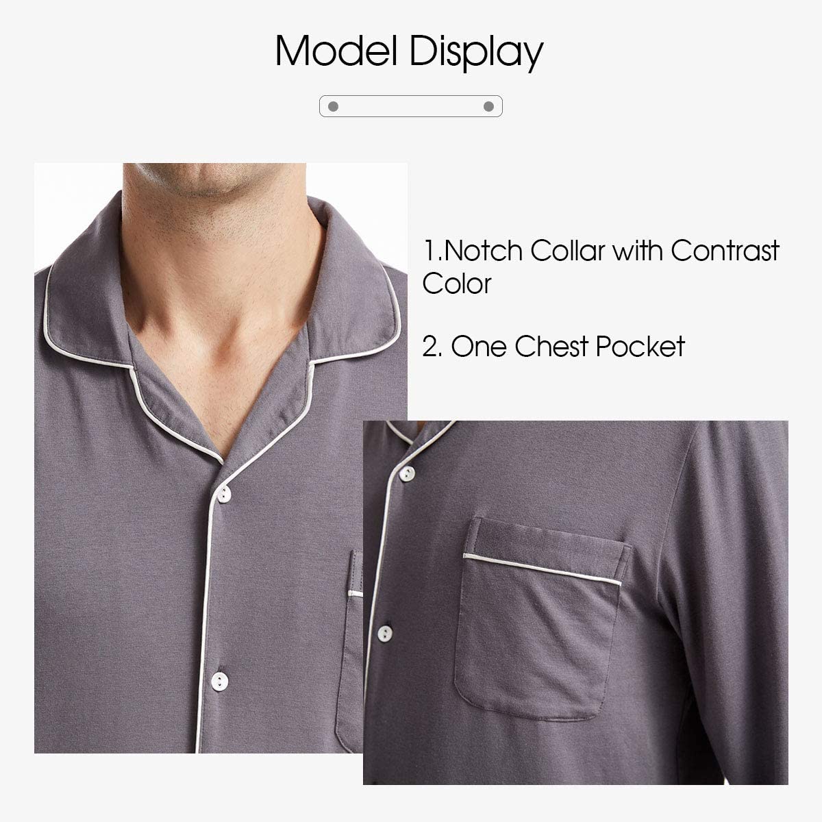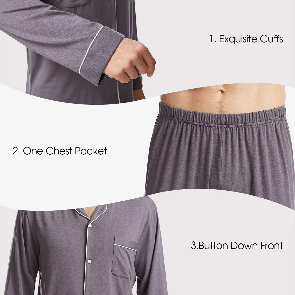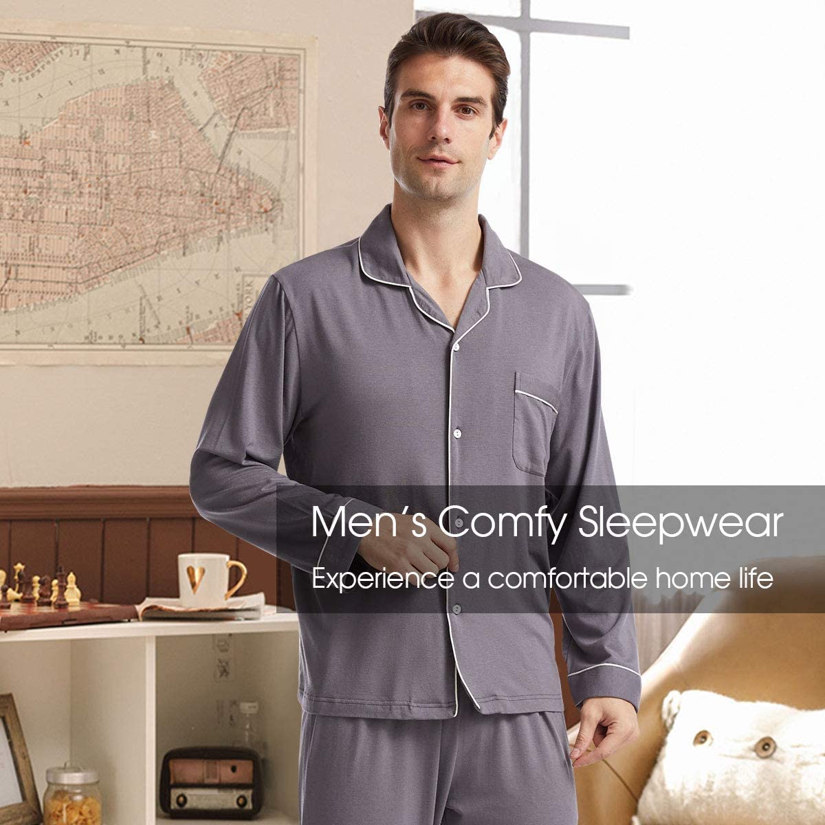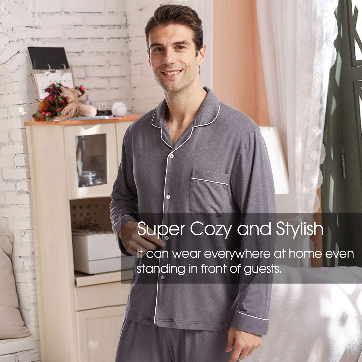 BAMBOO COOL Men's Pajama Set Lightweight Long Sleeve Button Down Soft Bamboo Sleepwear for Men Dark Grey