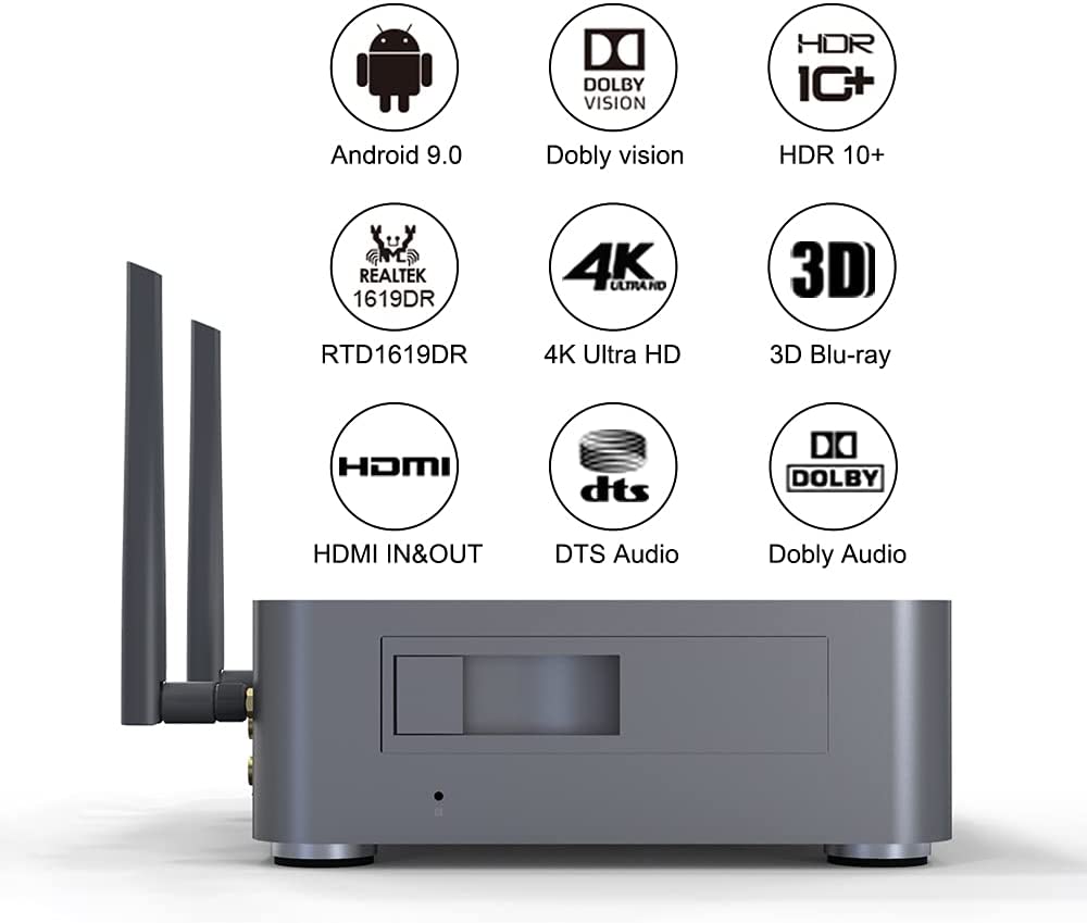 - 【Meet Blu-ray And Hi-Fi Need】4K HDR Media Player. 4K@60Hz, 12Bit, BD/UHD BDMV/ISO, MVC 3D(Blu-rayMKV), MKV, TS etc, will support all popular D Vision profiles ( P4, P5, P7, P8, MEL / FEL ). AUDIO lossless playback, including master-level DSD: SACD ISO, DFF, DSF, Lossless CD: WAV, APE, FLAC. Up to DSD256 / PCM192Khz sampling rate, HDMI and SPDIF output, fully meet your Hi-Fi need