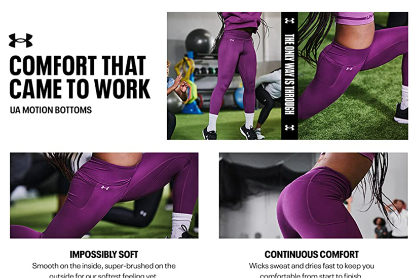 Ultra-soft double-knit fabric is breathable & comfortable. 4-way stretch construction moves better in every direction. Under Armour’s mission is simple: to make you better. . Wide, flat waistband with side drop-in pocket. .