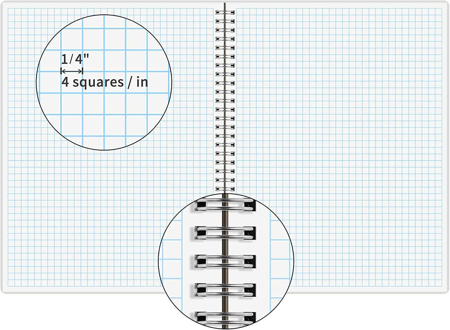 - Quad Ruled (4 Square/Inch) Layout - blue horizontal and vertical lines create 4 squares per inch (4x4) for guidance when working, ideal for engineering and technical drawing, as well as notetaking and homework