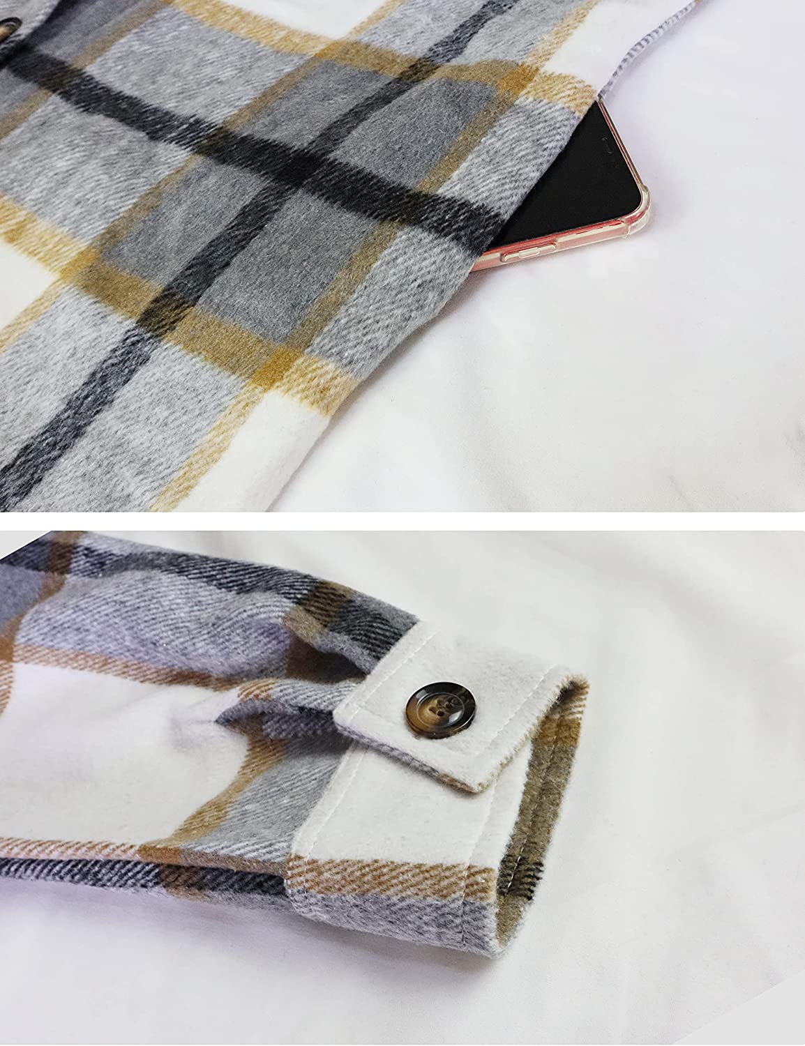Omoone Women's Lounge Lapel Button Up Long Sleeve Plaid Long Shirt Jacket Shacket