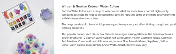 - Formulated to create uniform consistency, the transparent quality of Cotman Watercolor is perfect for new users.