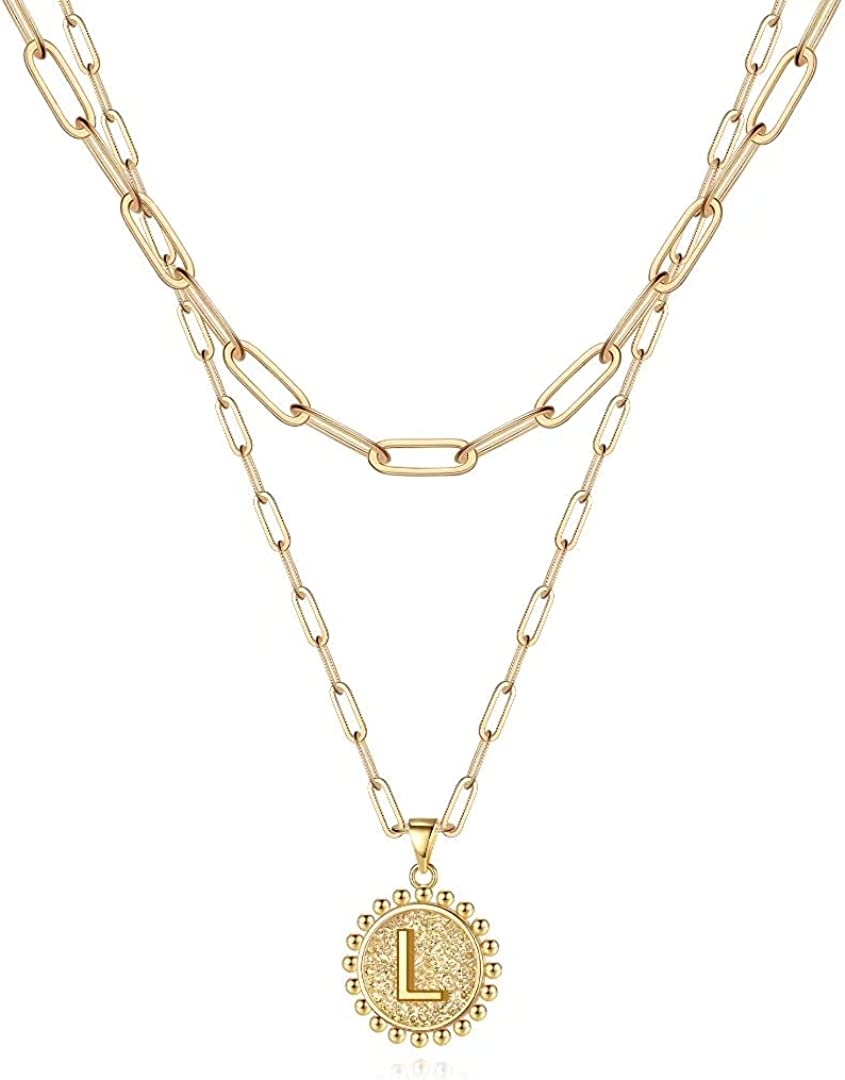 LAYERED NECKLACE: 2Pcs Layered necklace, paperclip chain choker necklace, initial coin pendant necklaces. Fashion originates from classics, minimalism design, great for wearing alone or layering with other dainty necklaces.
