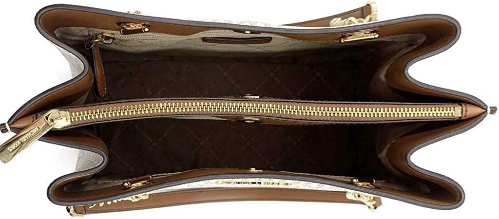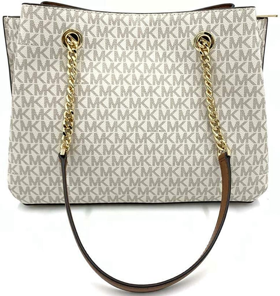 Our Teagan shoulder bag scores with its soft structure, which is refined by our metal logo. Whether business or leisure, it gives every outfit the perfect finishing touch. Shoulder bag. Crispled leather. 100% leather. Metal parts in gold tone. 12" L x 9" H x 6" D Interior: one zip pocket on the back, one central zip pocket, two pockets on the front. Lining: 100% polyester. Press stud fastening Imported b>High-quality designer Michael Kors handbag in perfect workmanship. From the outside, the bag is very stylish. The thick and solid fabric of the bag is very high quality and sturdy stitching, so you can enjoy the bag for a long time. The handles of the shoulder bag are long to carry it as a shoulder bag. The shoulder bag can be closed with a high-quality press studs, so the items of daily use can be protected from theft. The two slip pockets are ideal for a wallet and smartphone. In addition, another zip compartment offers enough storage space for other small items. The division of the bag and the large storage compartment are great for storing many items. The carrying bag has an optimal size, it offers enough storage space and can also be used as a school bag. On the other hand, its handy size of approx. 30.5 x 22.9 x 15.2 cm, ideal for everyday use. br> ▶ The details are in a high quality gold or silver tone. Otherwise, the base colour can be found in the pictures, it is therefore super weather resistant and dirt protected colours.