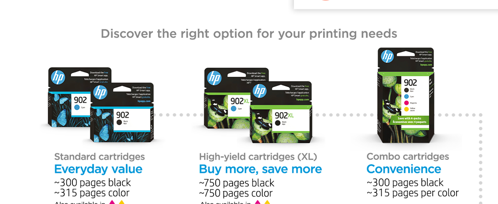 Expect professional-quality documents when you use Original HP printer ink and toner cartridges. Dependable performance, consistent page yields, and standout results are the norm – something the competition can’t match. With Original HP Ink and Toner cartridges, you can also avoid costly reprints and help ensure the flawless performance you expect from your HP printer.