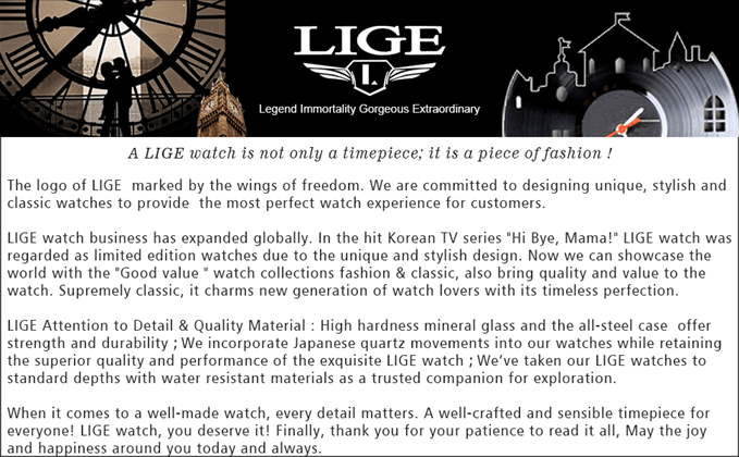 • 【watches for men Perfect gift】- This simple watch blend goes with every occasion be it formal or casual. Wear this watch on the go, from business, leisure to indoor and outdoor activities or for daily use. The LIGE wrist watch is a perfect gift for you and your loved ones.