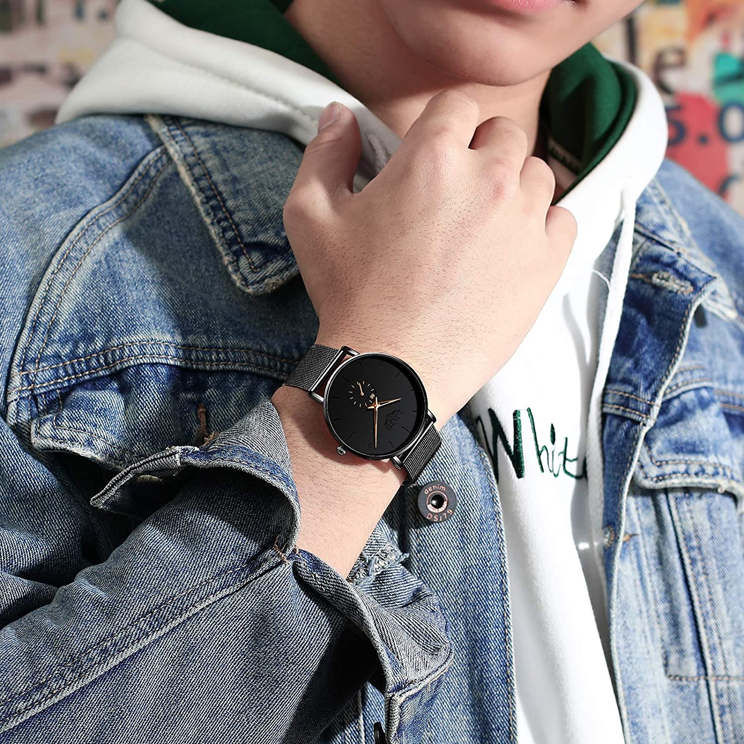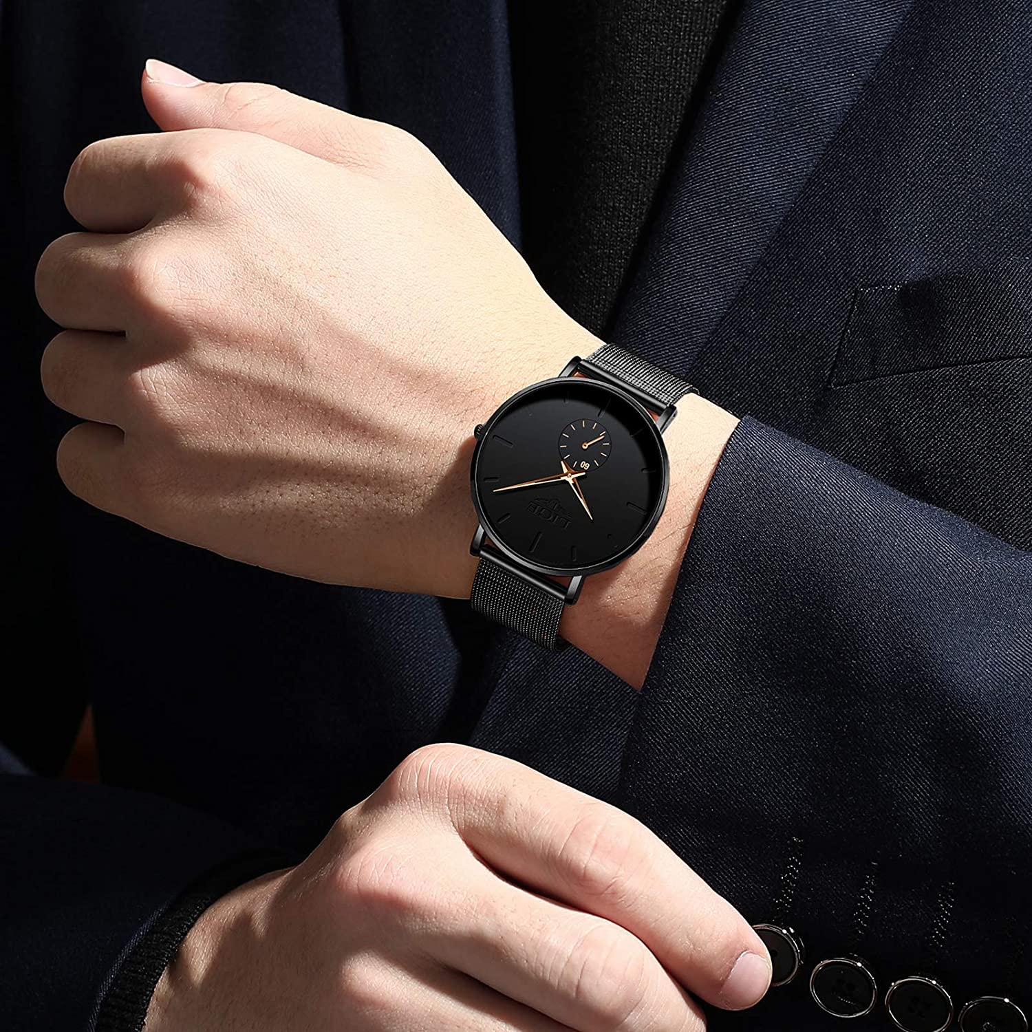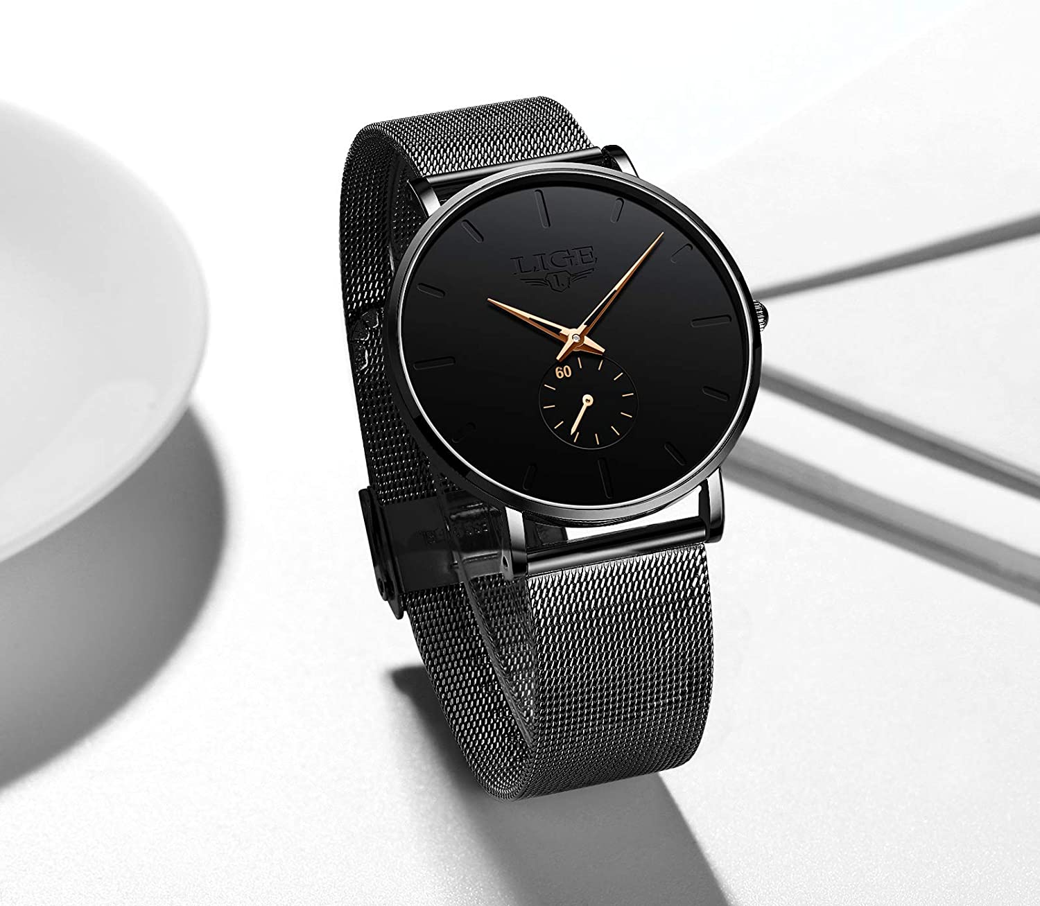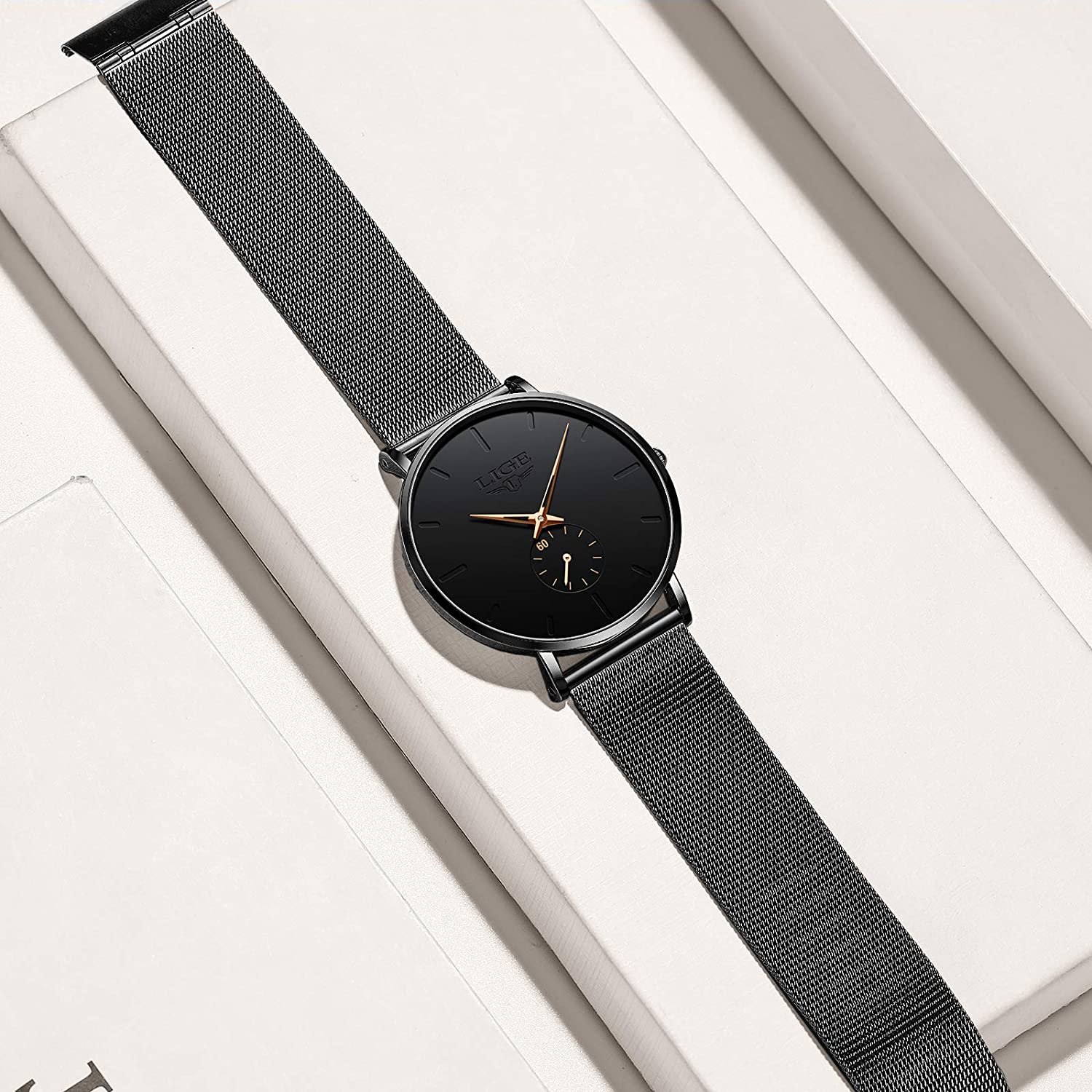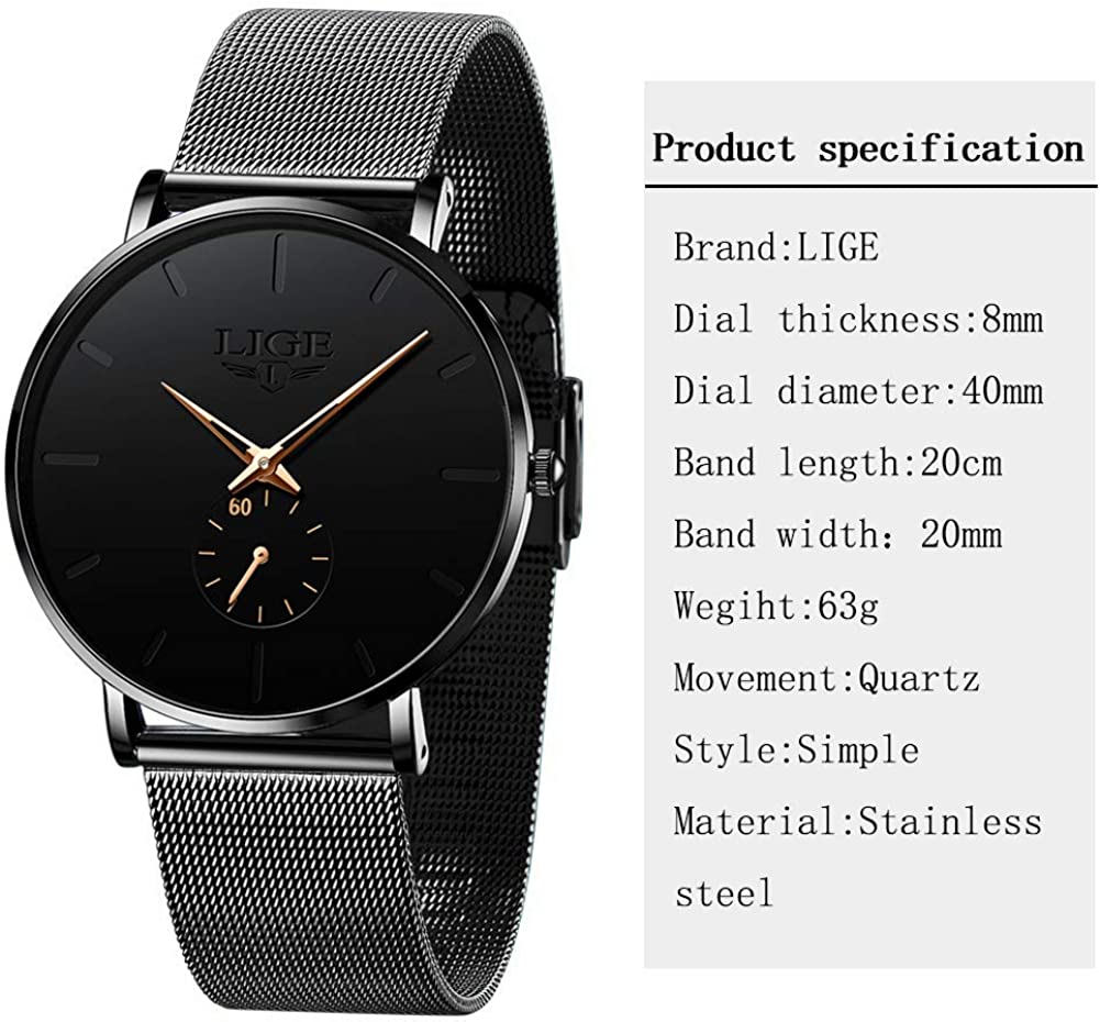 LIGE Mens Watches Ultra-Thin Analog Quartz Minimalist Stainless Steel Mesh Band Dress Watches for Men