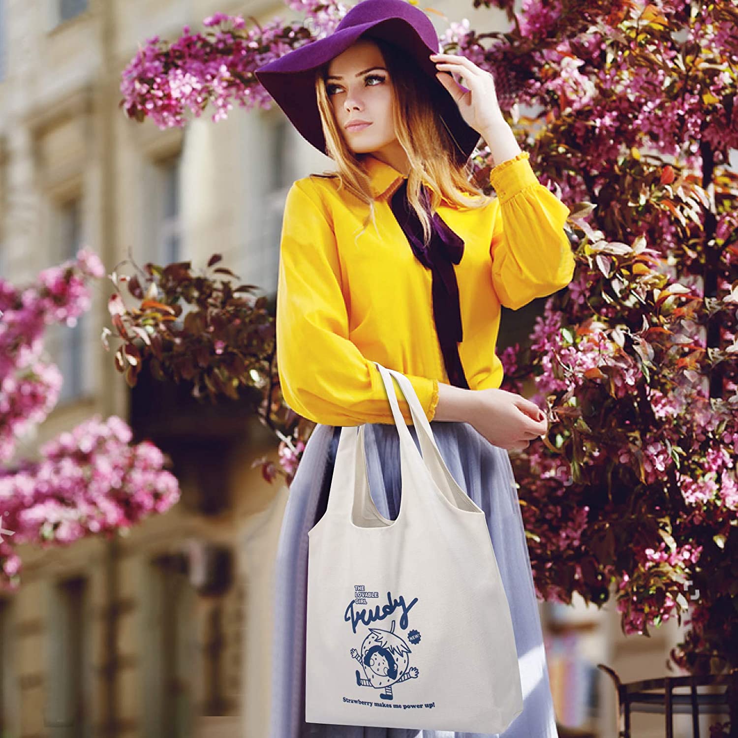 - X-Large Capacity: Canvas tote bags are very big which can hold up to 50+ pounds of groceries and replaces 2-3 conventional grocery bags. Long handles of the reusable shopping bags allow for hand holding or carry on the shoulder for easier carrying. The foldable aesthetic tote bag is perfect for shopping, groceries, travel, storage and practical for daily use.