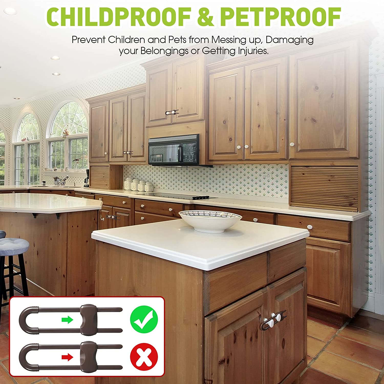 • Quantity: you will get 10 pieces u shape child cabinet locks, enough quantity for you to prevent your little baby or smart baby from reaching off-limit rooms, keeping them safe with closet, cupboards or fridges that are filled with stuff that may cause harm to your babies; And helpful in preventing for babies or pets from messing up your cabinet even the house, these cabinet sliding cabinet latch is childproof and petproof