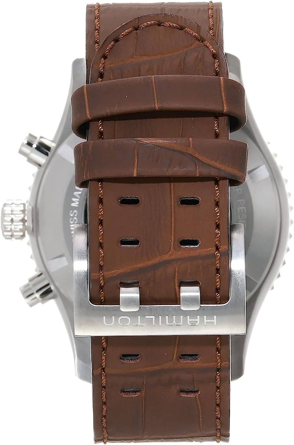 Hamilton Watch Khaki Aviation Converter Swiss Automatic Chronograph Watch 44mm Case, Black Dial, Brown Leather Strap (Model: H76726530)