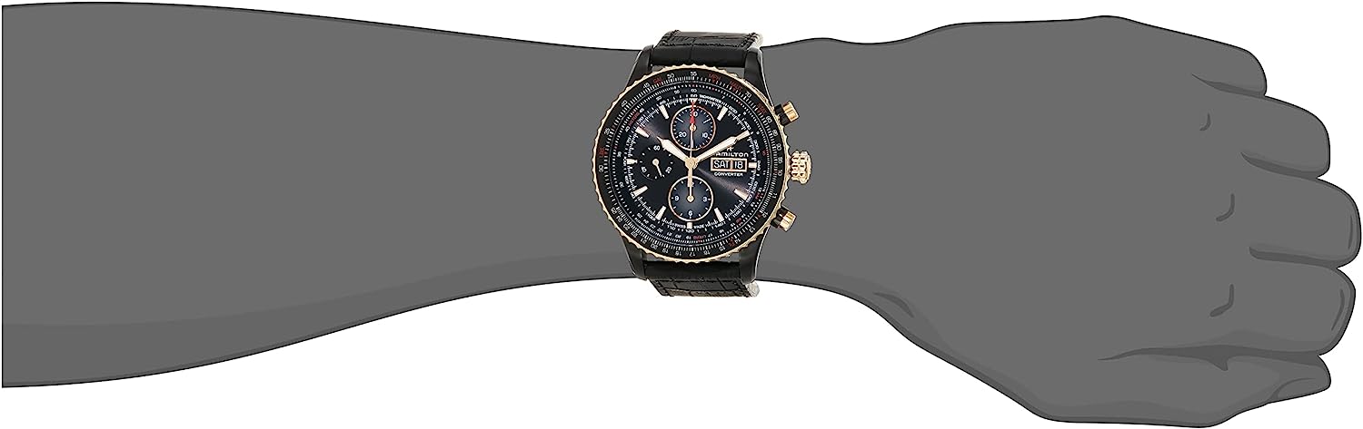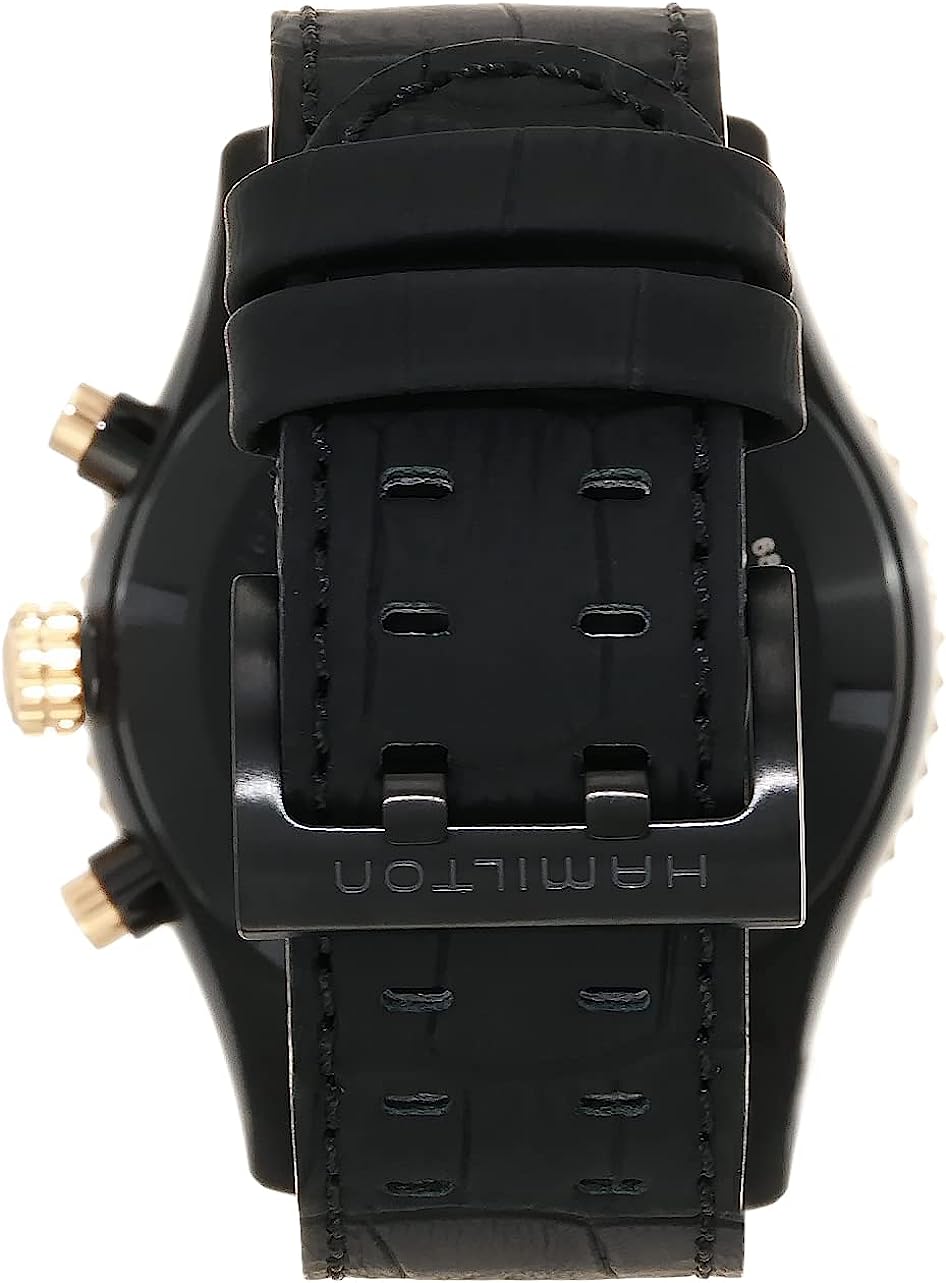Hamilton Watch Khaki Aviation Converter Swiss Automatic Chronograph Watch 44mm Case, Black Dial, Black Leather Strap (Model: H76736730)