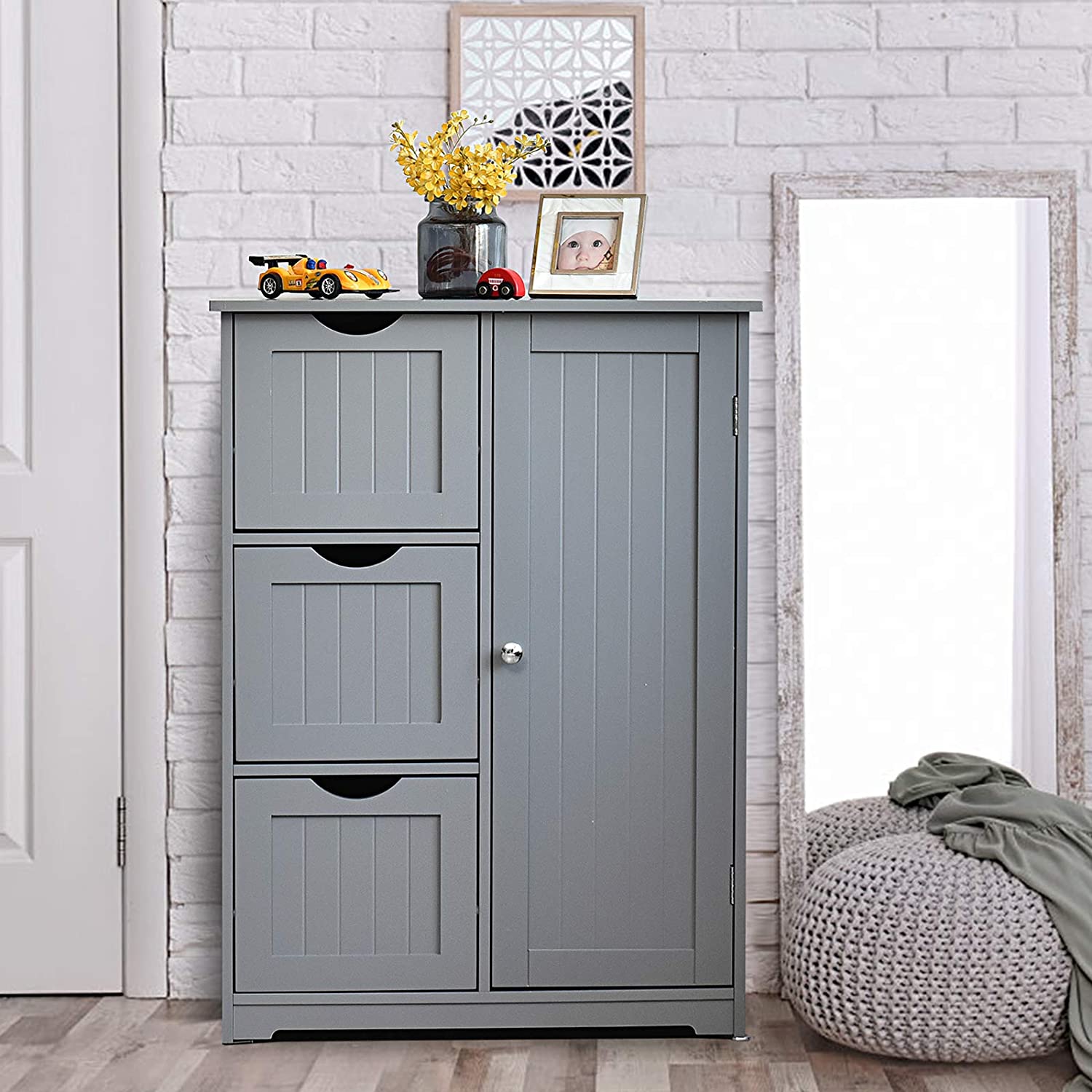 Large Storage Space: Comes with 3 drawers and a cupboard, this storage cabinet will provide spacious space for your items such as toys, books and bottles. And the top of cabinet can display decors. In addition, the door is equipped with magnetic snap to prevent accidental opening.