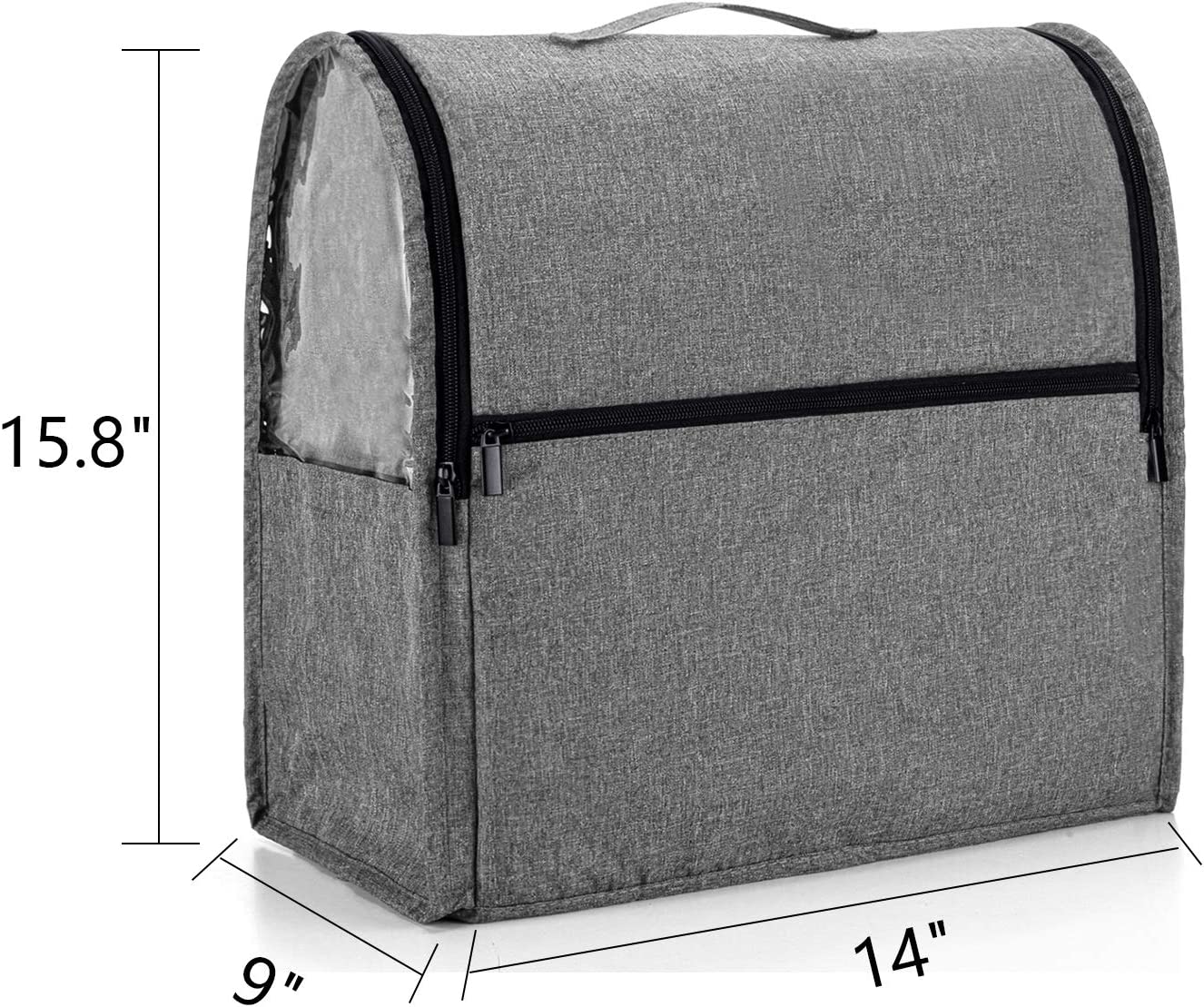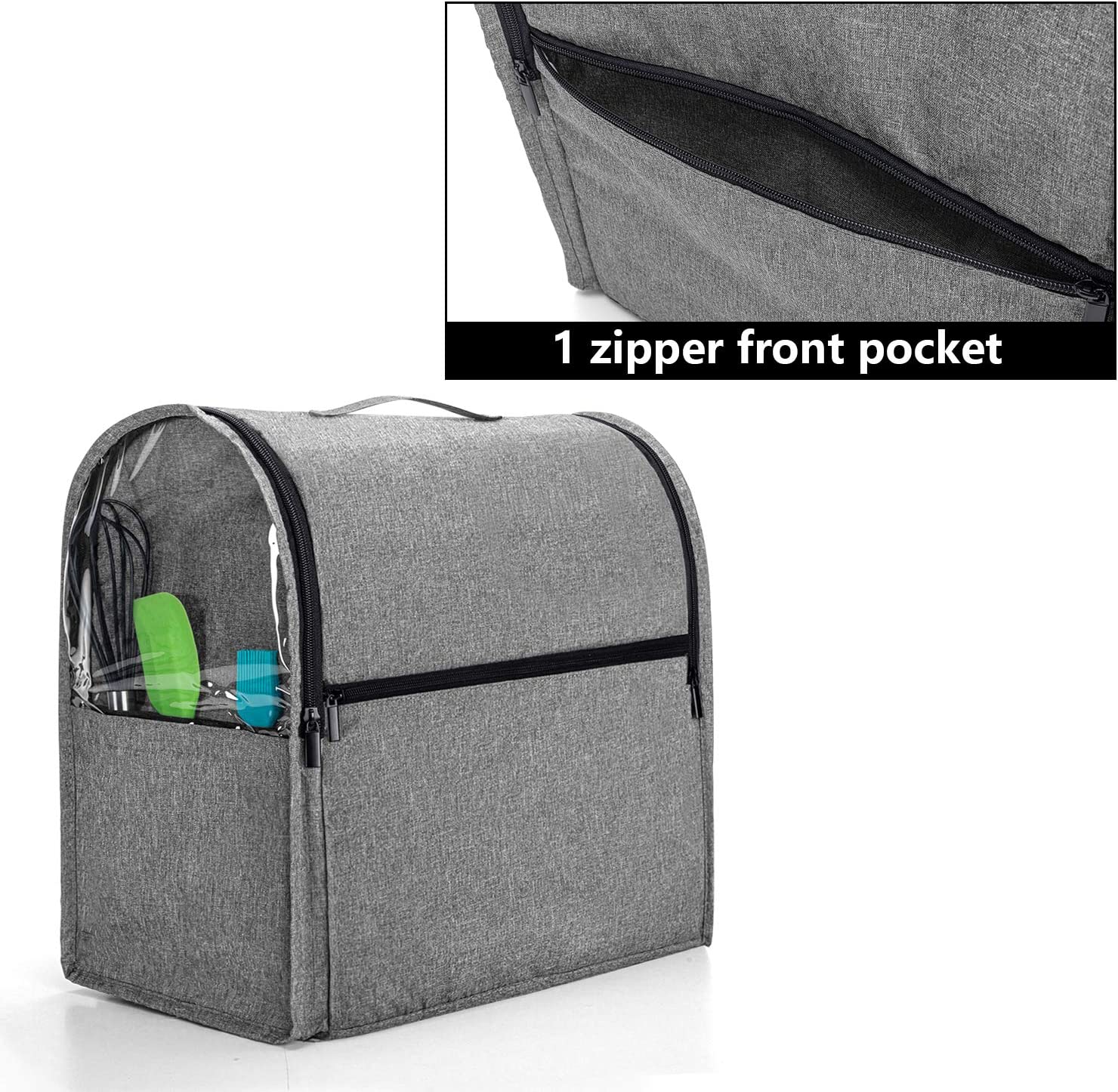 Luxja Dust Cover for 6-8 Quart KitchenAid Mixers (with Clear Side Zipper Pockets), Dust Cover with Top Handle for 6-8 Quart Stand Mixers and Extra Accessories, Gray