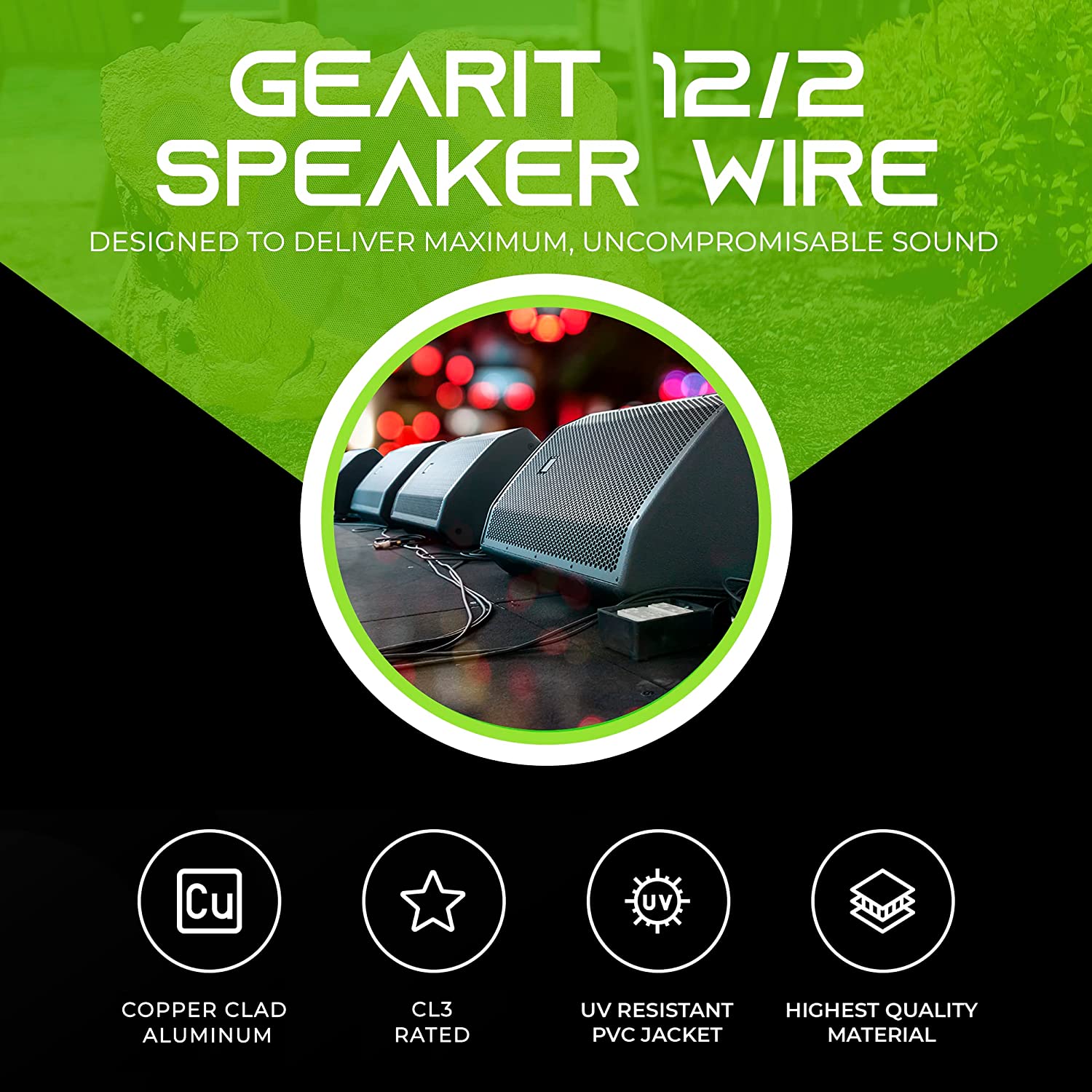 FOR OUTDOOR, WATERPROOF, DIRECT BURIAL SPEAKERS - Our GearIT CL3 speaker wire cable comes in 75ft, 100ft, 125ft, 150ft, 200ft lengths and black colored trailer wire. Search on Amazon for GearIT 12 AWG Speaker Cables to find all our 12 ga speaker wires. All GearIT outdoor direct burial speaker copper wires come with a limited lifetime warranty.
