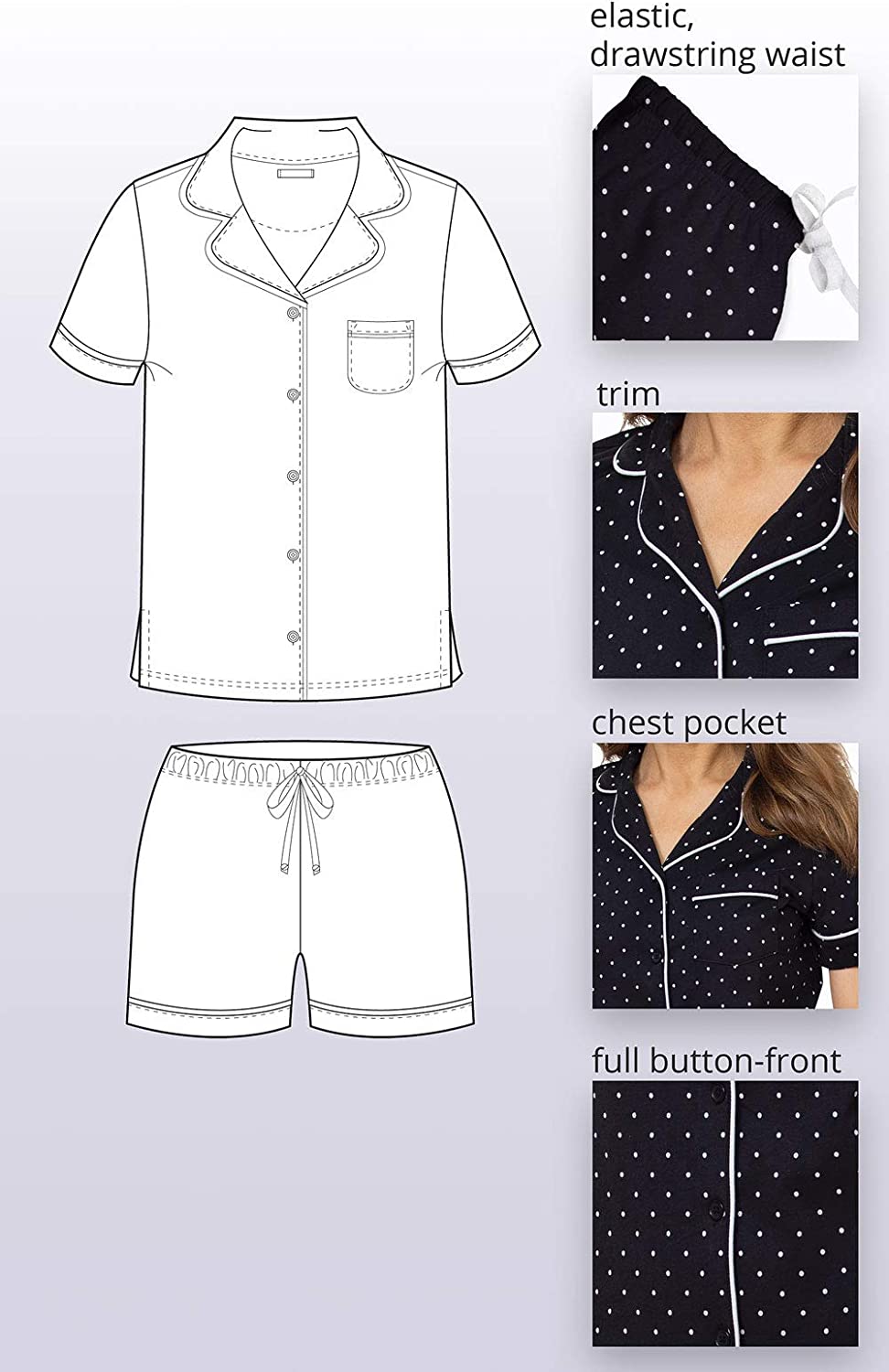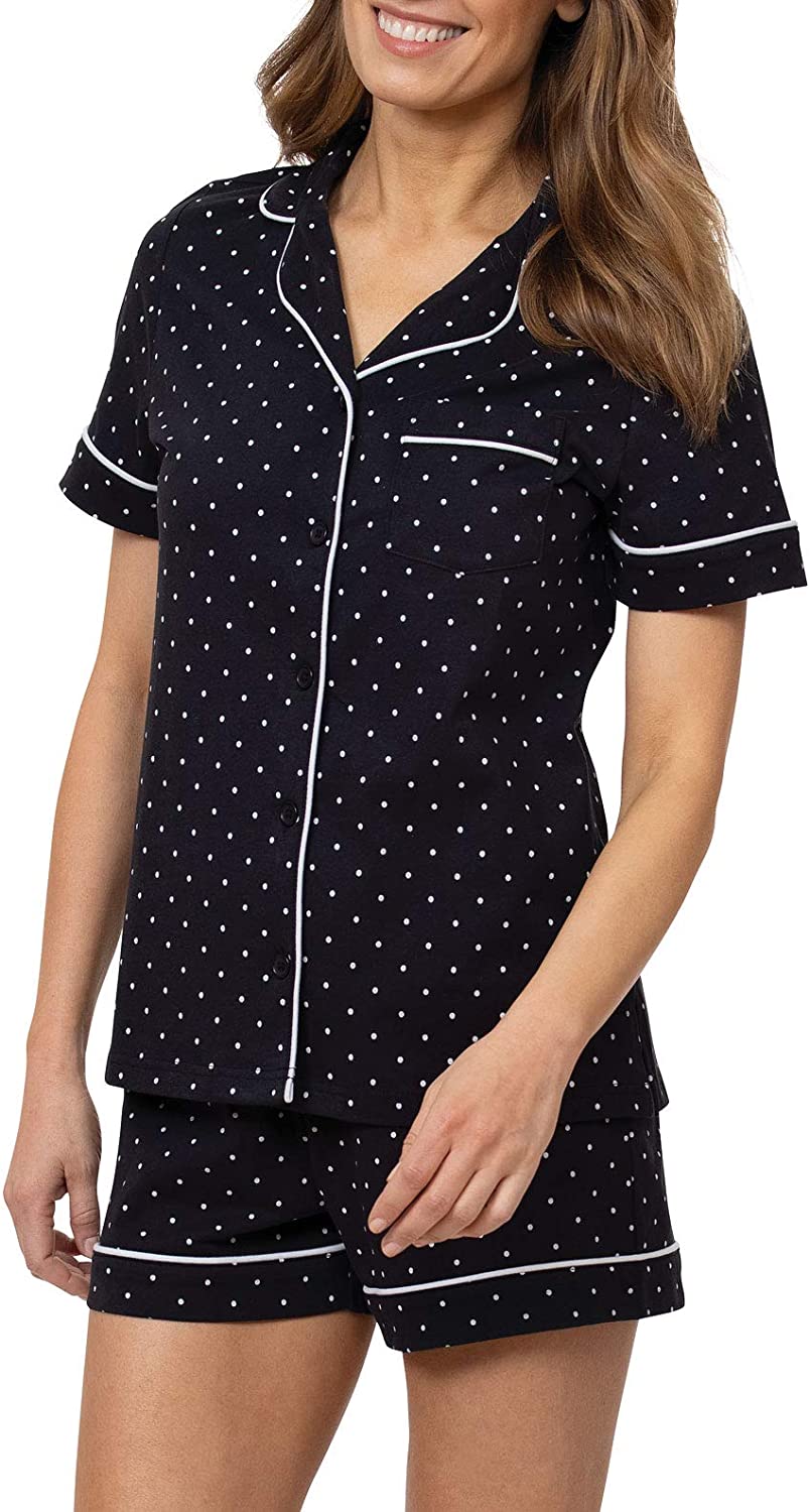 Premium Quality - PJ set is made with machine washable premium lightweight 100% cotton jersey and double brushed for softness; wear it and love it for years to come; available in rich solids and a variety of polka dot styles.