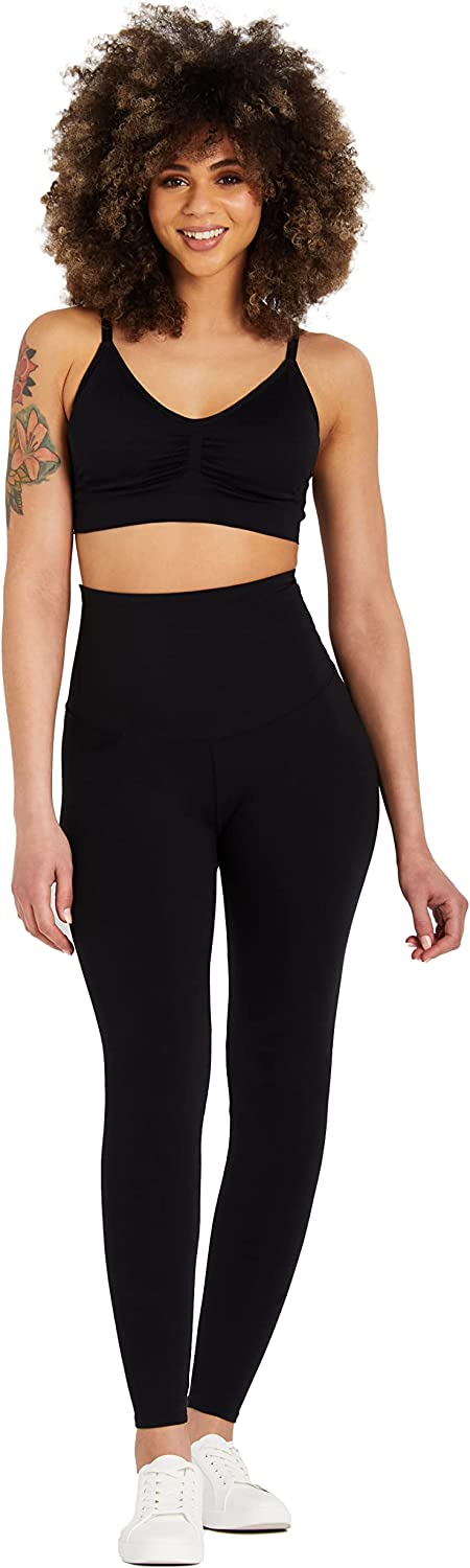 Full length 27 inch inseam legging supports, smooths, and helps to minimize the appearance of post baby belly
