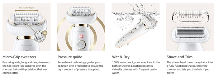 - 100% WATERPROOF: you can use in the shower or bath, with anti-slip grip for control even when wet. Epilation becomes virtually painless with frequent use in water
