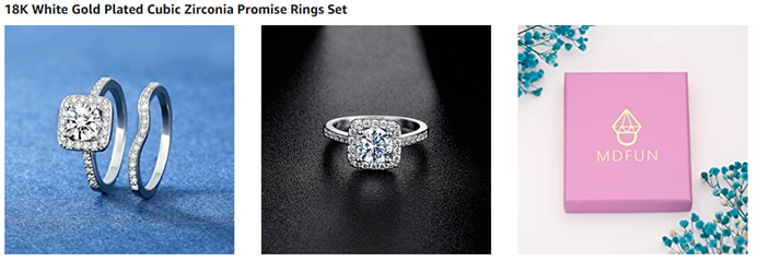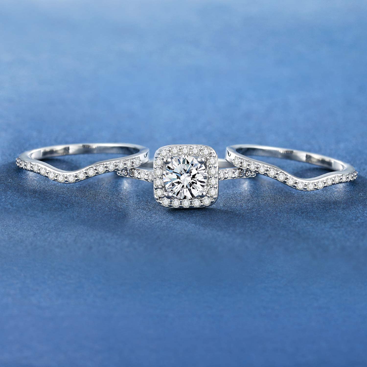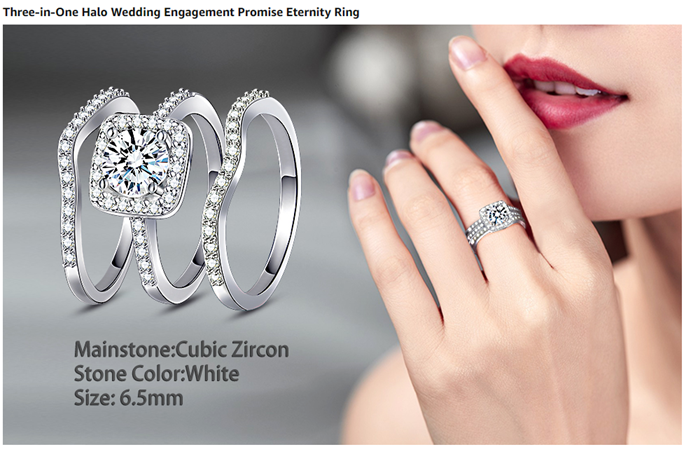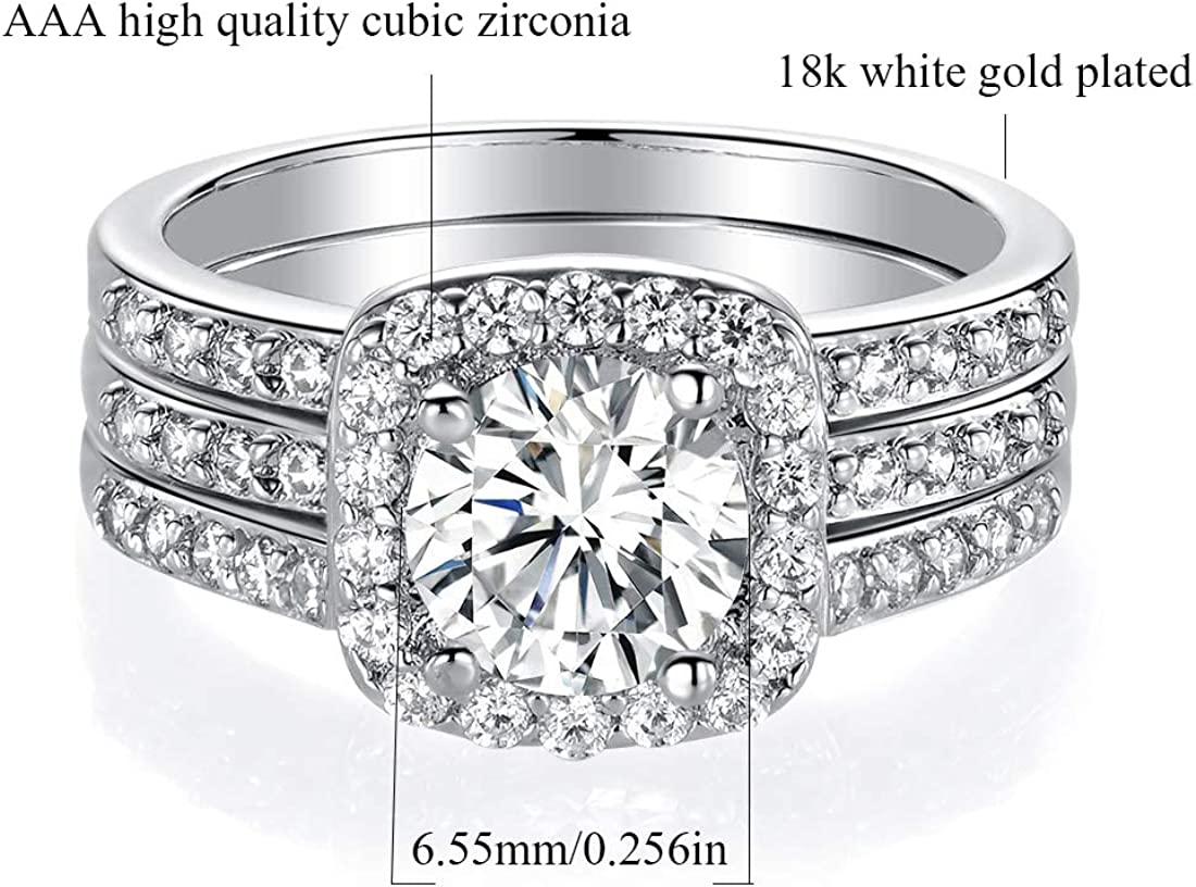 MDFUN 18K White Gold Plated Cubic Zirconia Three-in-One Halo Wedding Engagement Promise Eternity Ring for Women