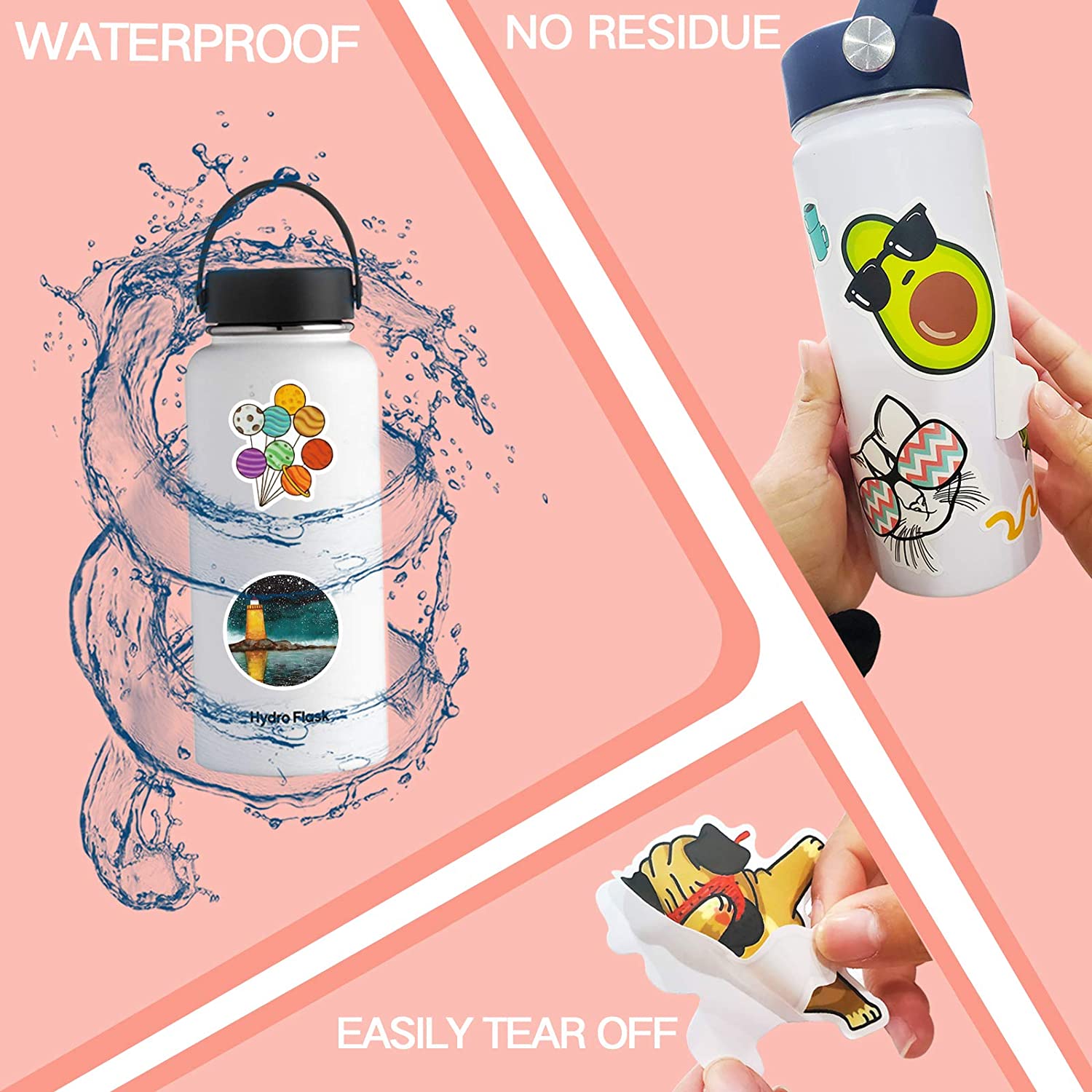These Cute Vinyl Waterproof Stickers contain 200 pieces of different pattern vinyl stickers, Size range from 2.0 inches to 3.5 inches