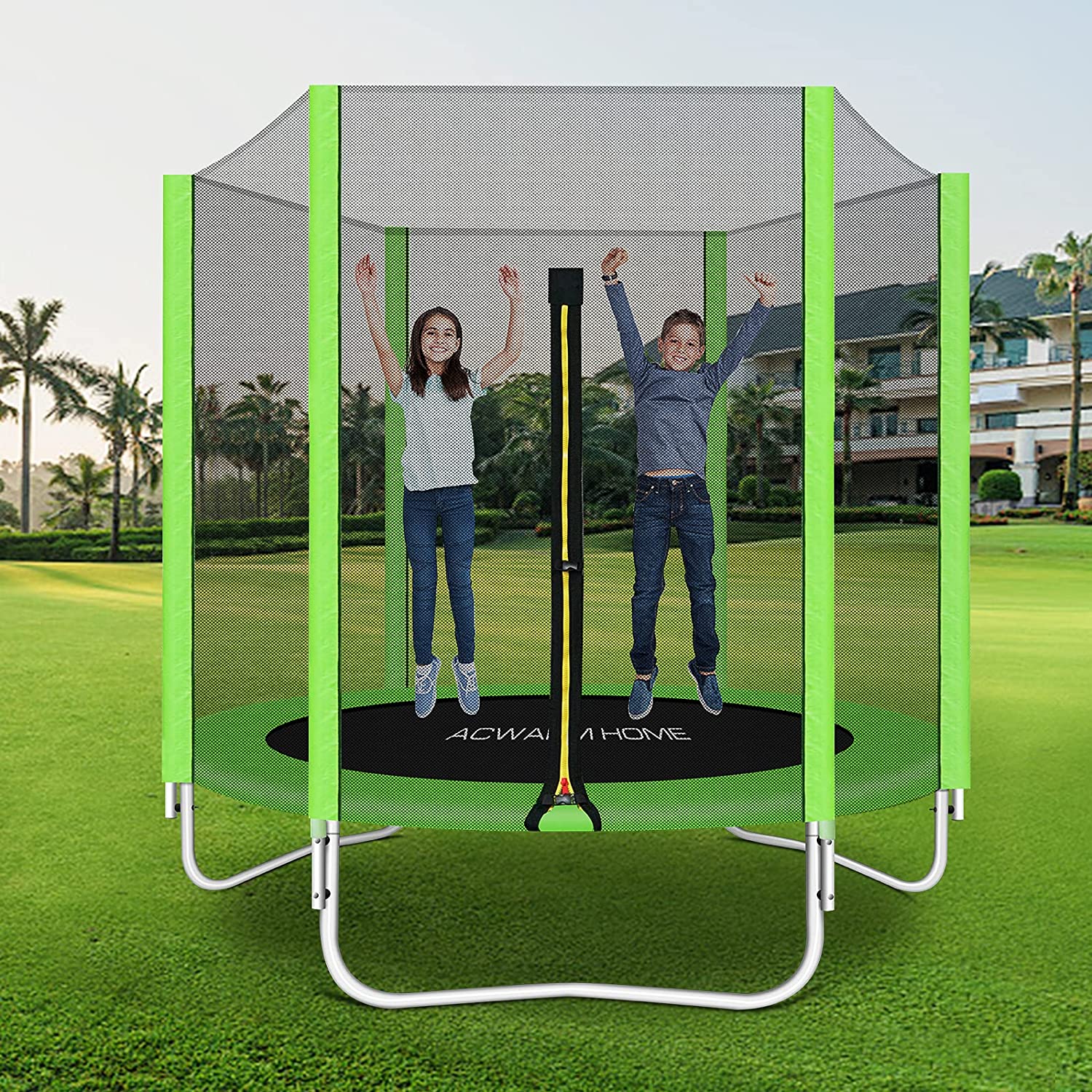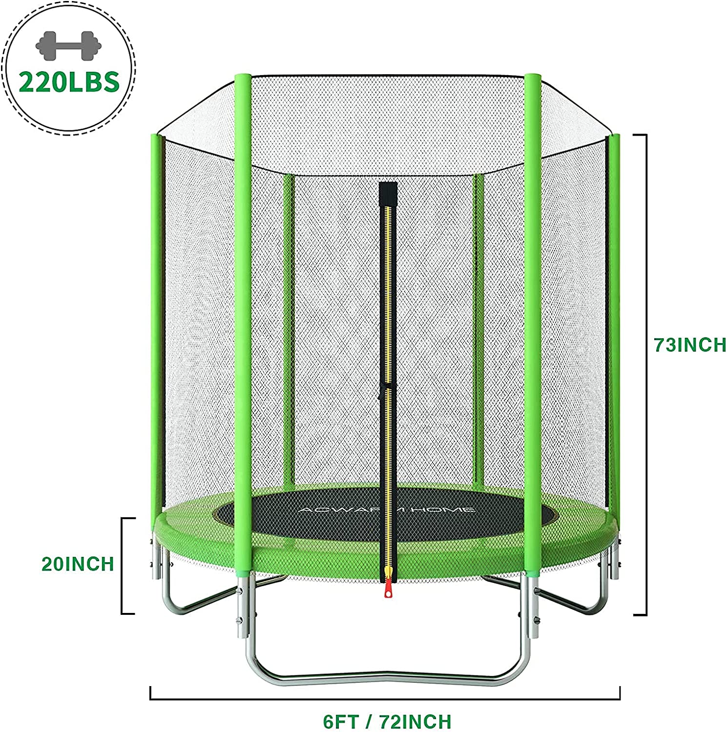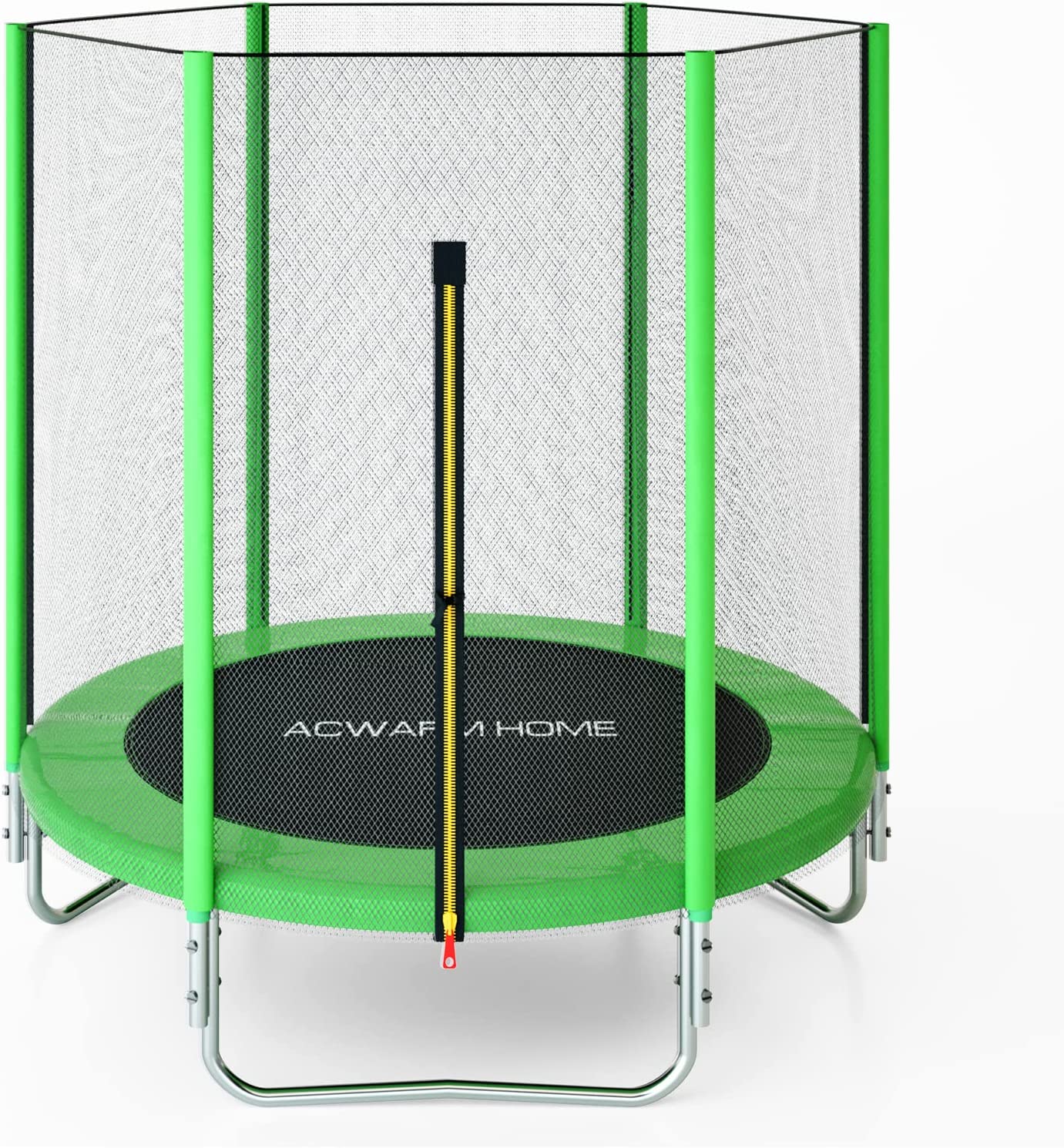 ACWARM HOME 6FT Mini Trampoline for Kids, Toddler Trampoline Indoor with Safety Net, Small Round Trampolines-Green