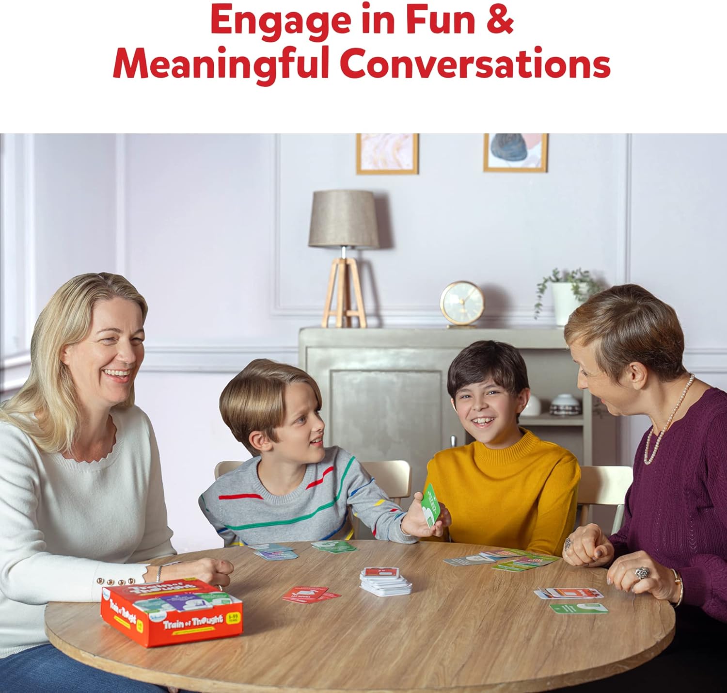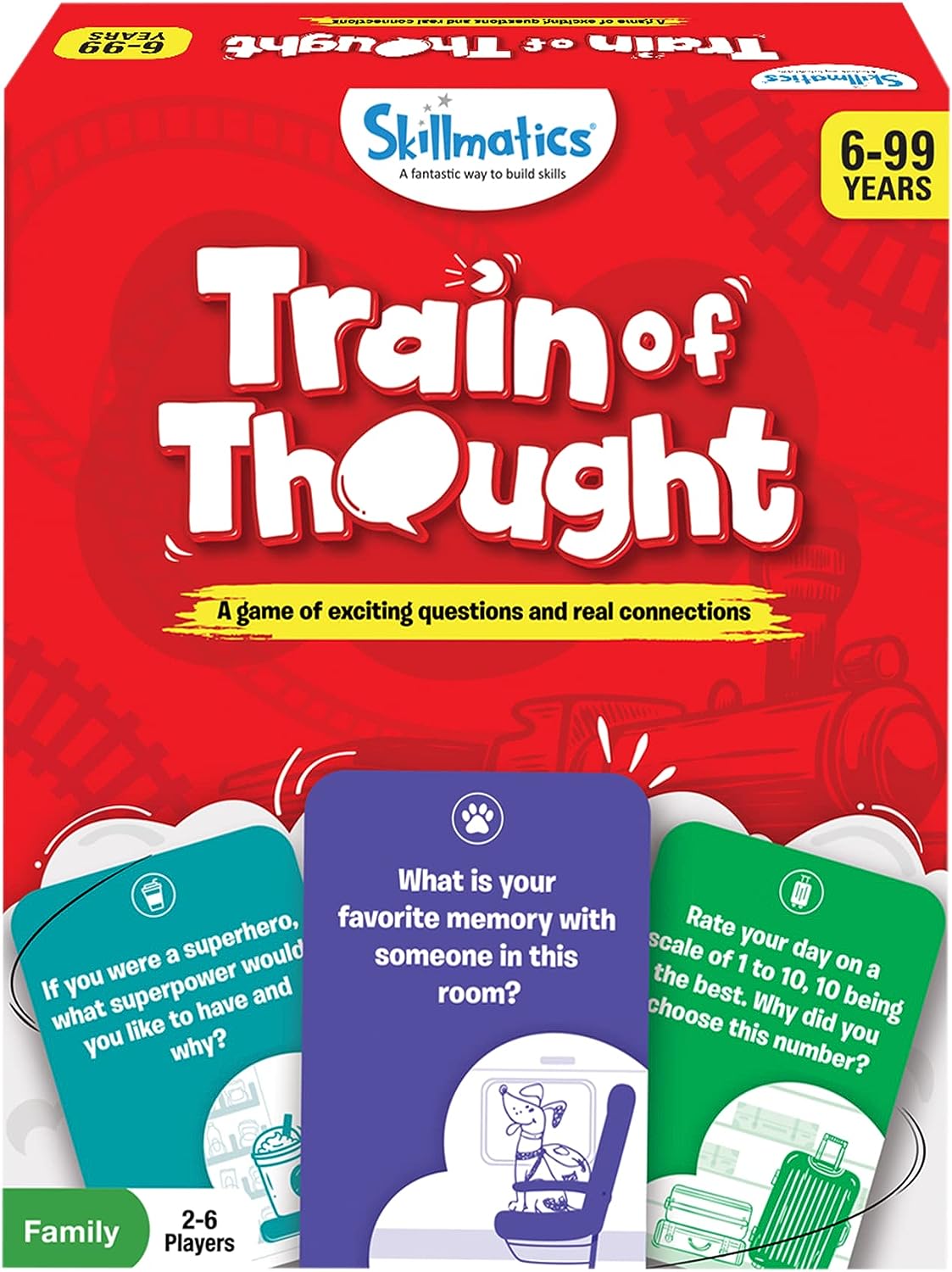 • TRAIN OF THOUGHT CARD GAME - Train of thought is the perfect parental tool to approach playtime and family time. This highly engaging, age-appropriate game of exciting questions & fun challenges can be enjoyed by all ages.
