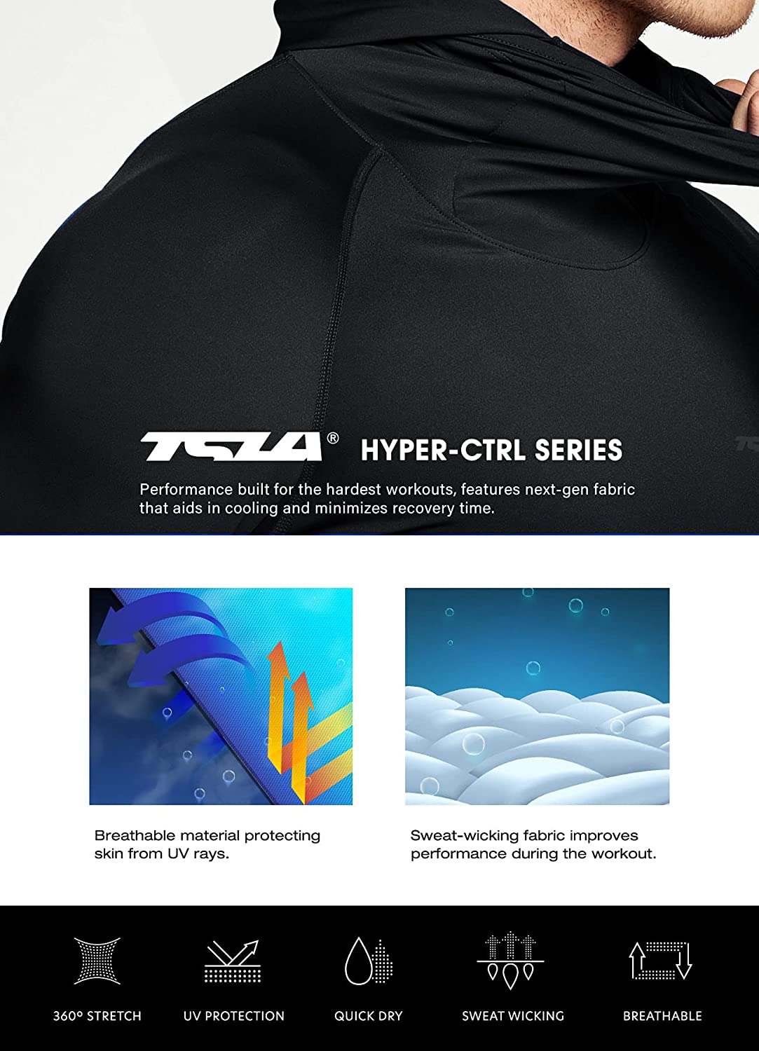 TSLA All Season Baselayer Series designed for releases heat and wicks moisture with a cooling effect.