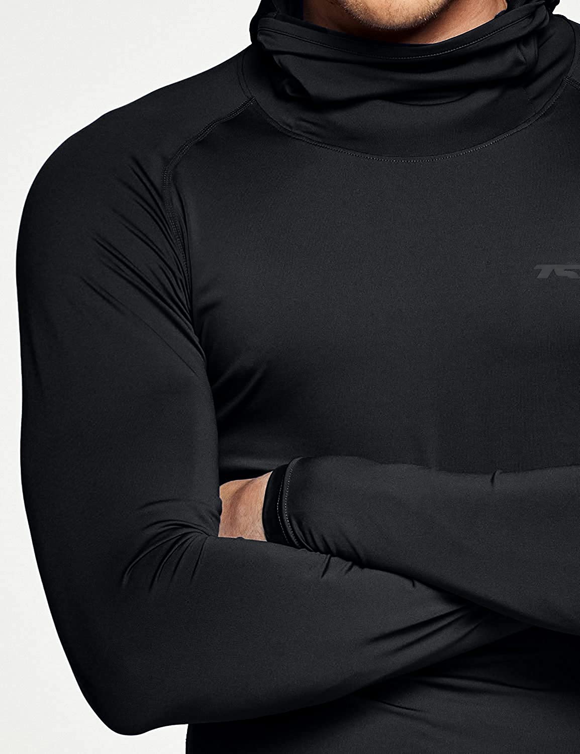 TSLA Men's Long Sleeve Workout Shirts Hoodie with Mask, UPF 50+ Cool Dry Fit Sports Compression Shirts