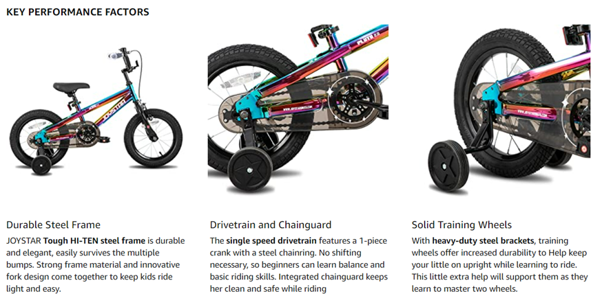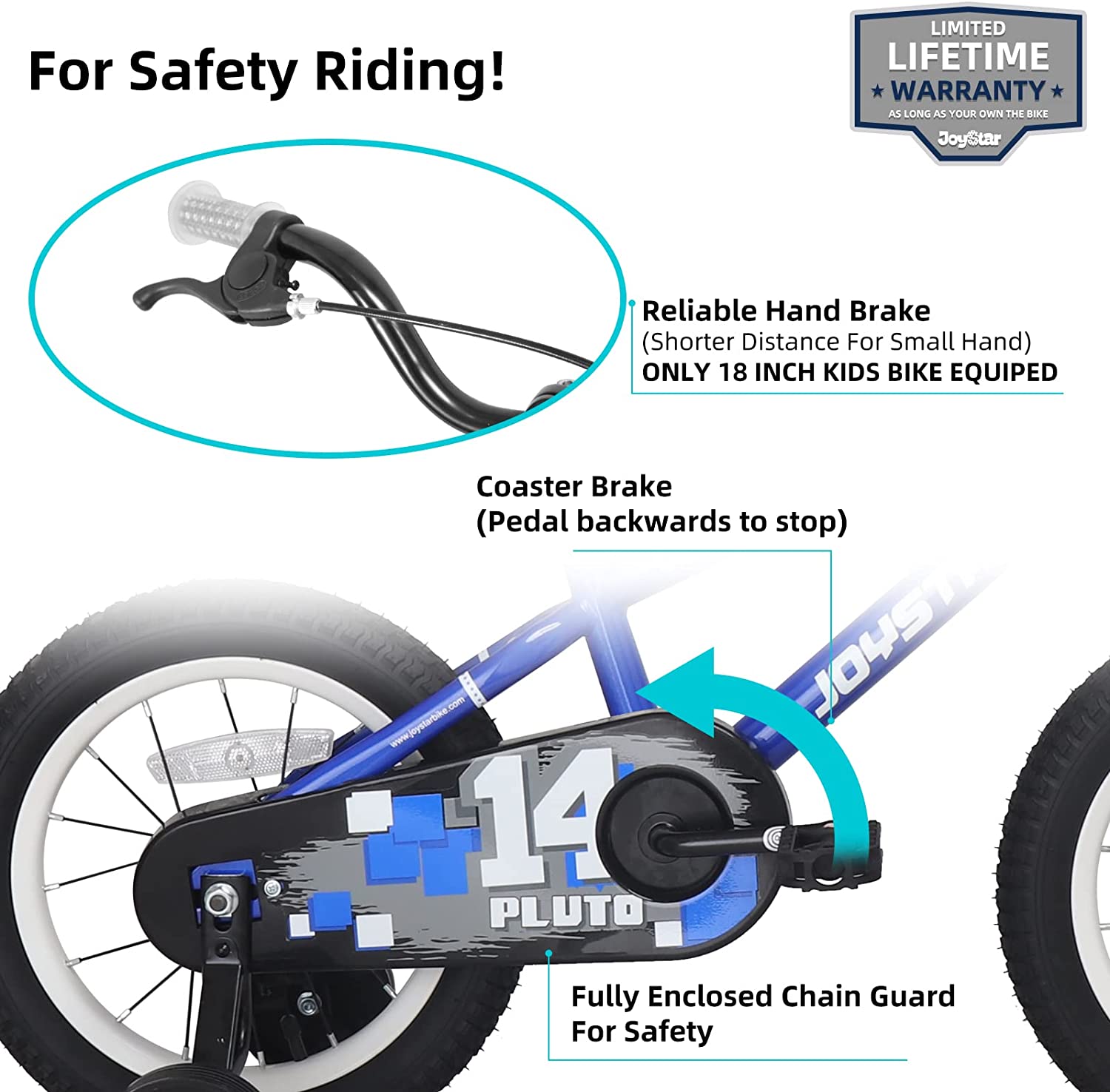 - 1. Amazing Design and Color! JOYSTAR PLUTO 2.0 Kids bike for boys girls with Bright dazzling colors, stylish and charming. DIY decals add extra fun to the ride. Soft seat offers more comfort in riding.