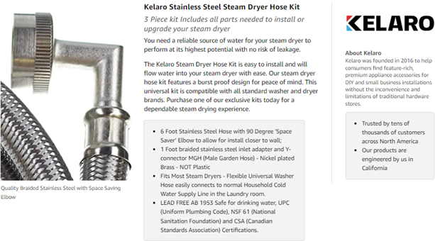 - INCLUDES ALL PARTS FOR INSTALLATION - Steam Dryer Kit Includes 6 Ft stainless steel hose, 1 Ft inlet adapter hose, brass Y connector and instructions - No plastic pieces.