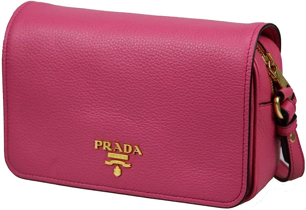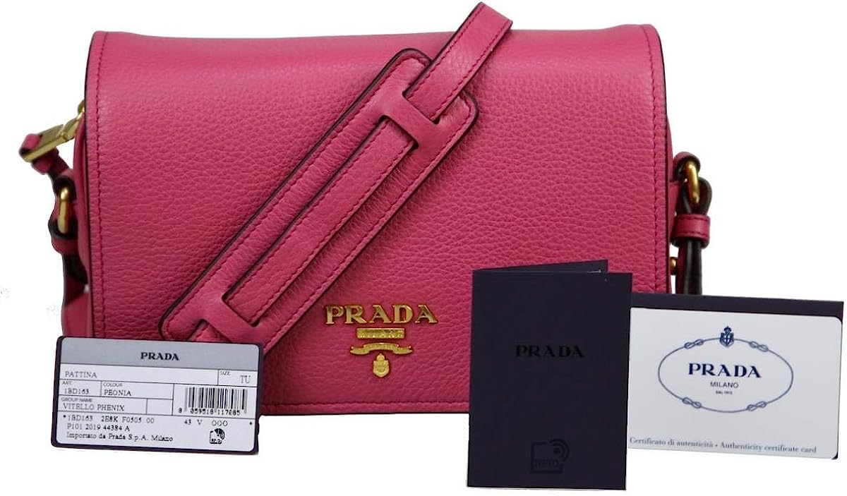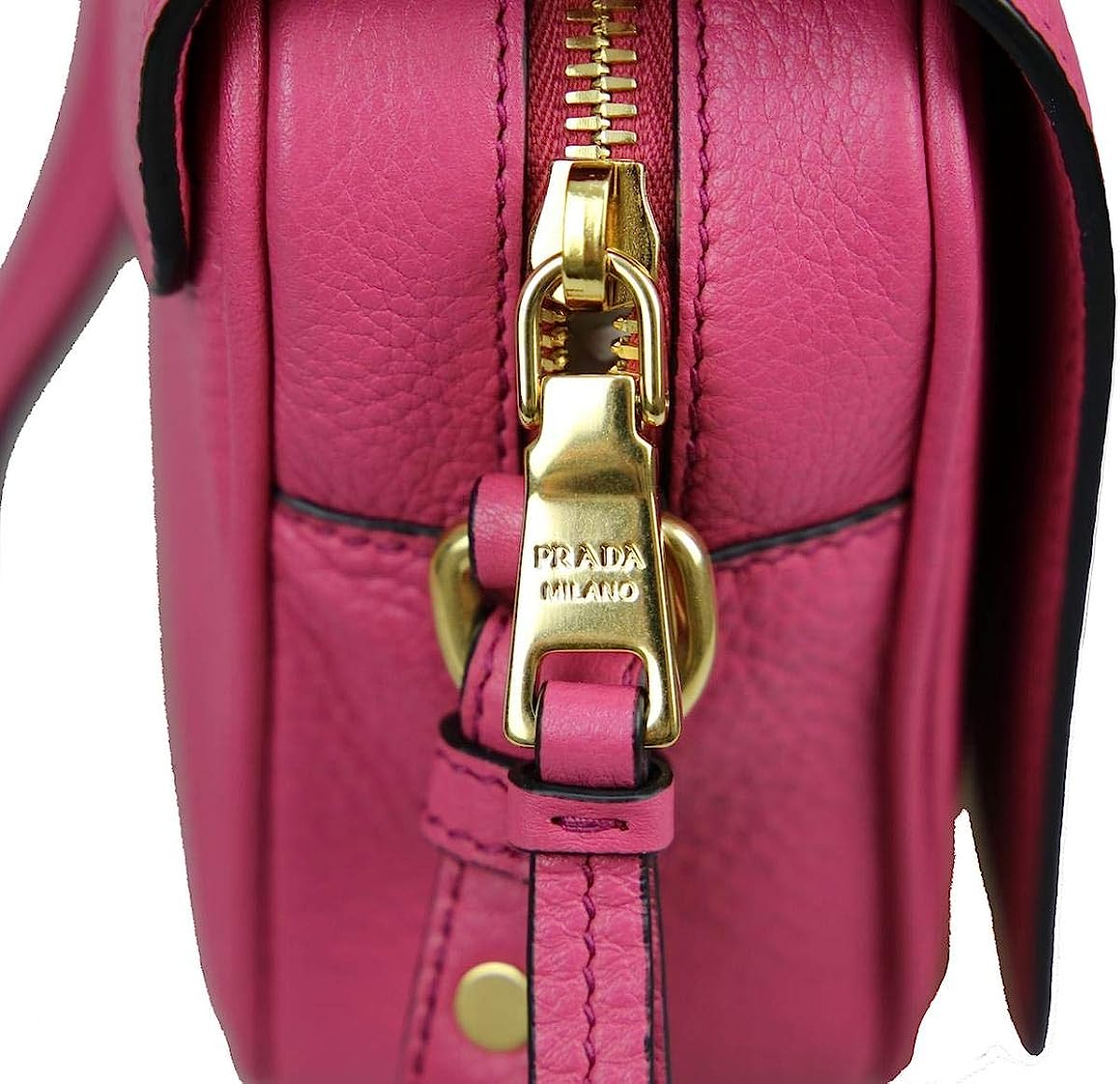 Prada Women's Brown Vitello Phenix Leather Crossbody Handbag Bag 1BH046, Medium